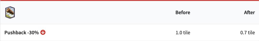 我怀疑这给了平衡性调整团队充分的理由对滚木下手。调整生效之时,滚木的击退将从1格变为0.7格,显著的-30%。