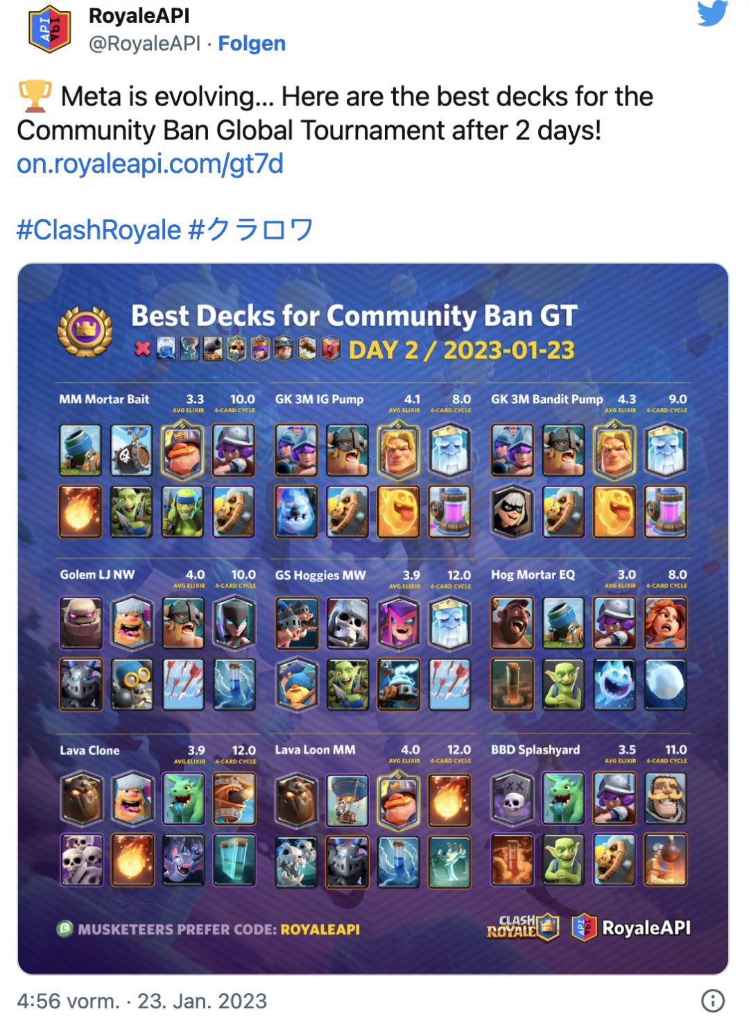 在最近的社区ban卡锦标赛中,滚木毫无意外地出现在名单中。没了滚木,自闭桶表现欠佳。下面是锦标赛中表现亮眼的卡组: