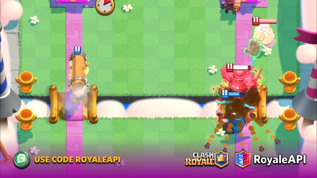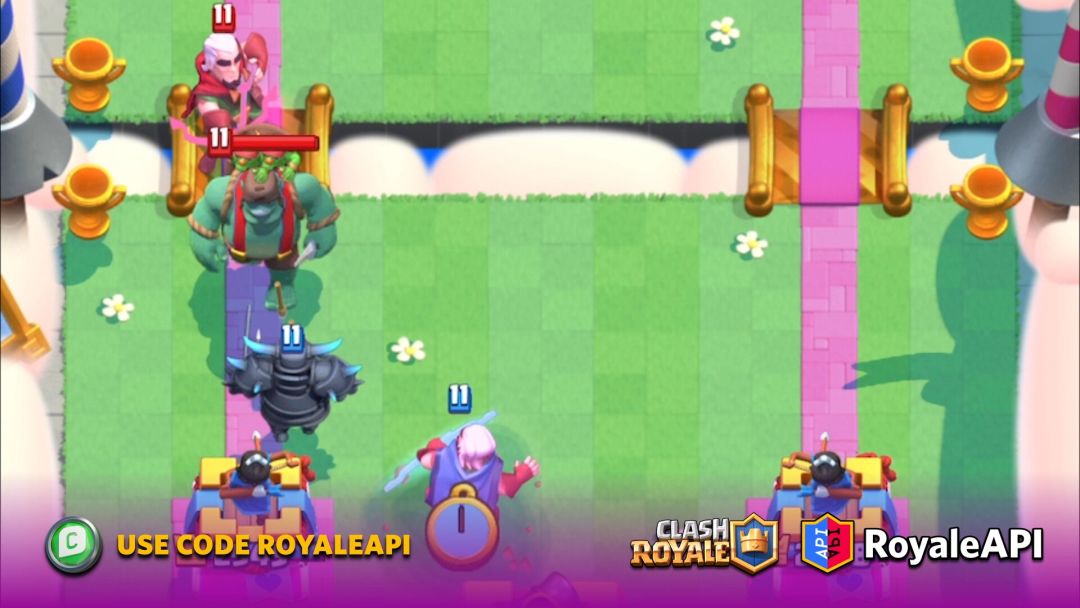 结果就是被策反的皮卡超人一刀砍向你的塔,同时被策反的哥布林巨人径直走向河道。
