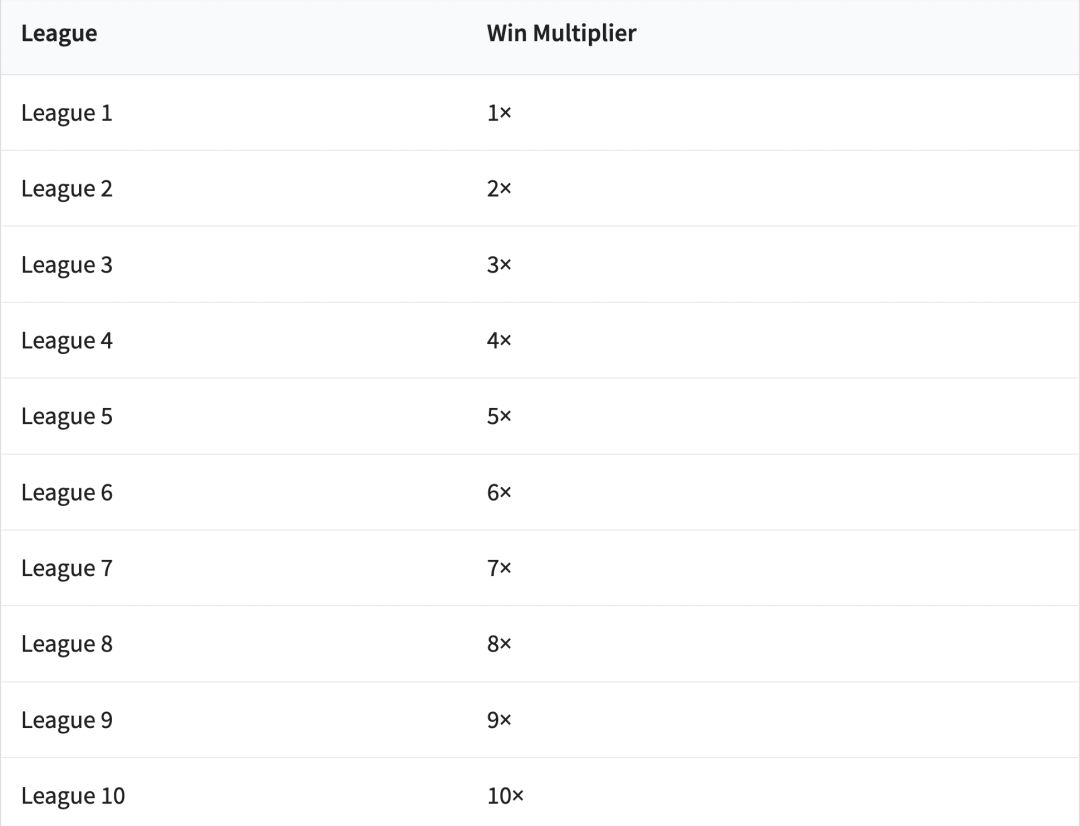 之前,获胜乘数最高为6。改动后,乘数将等于联赛阶数。