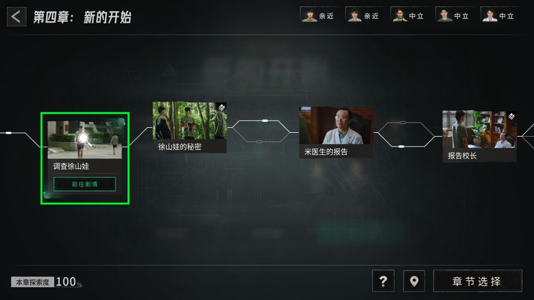 第二步:在第四章故事线中找到【调查徐山娃】,在后山的场景探索中搜集到全部线索