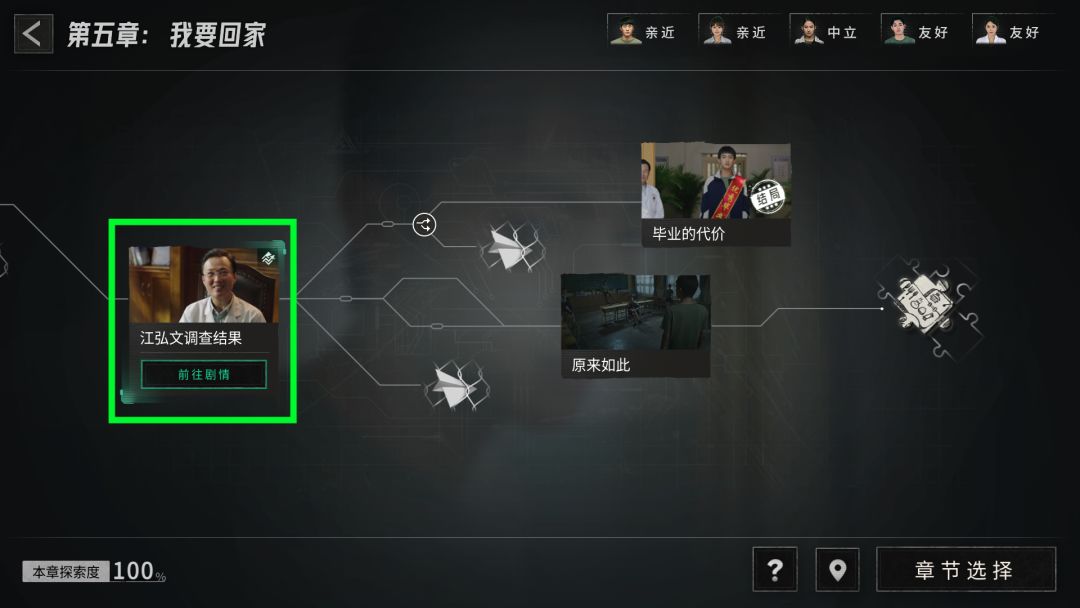 最后:在第五章【故事线】划到最后,选择【江弘文的调查结果】,选择“供出当晚真相”