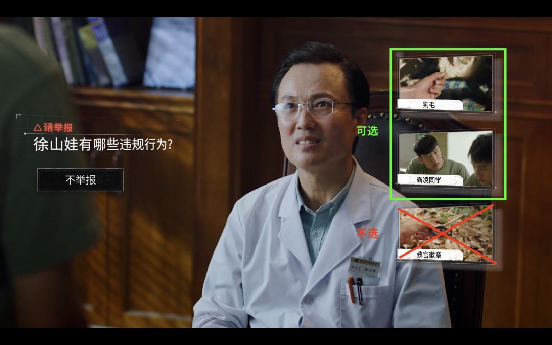 然后点击“跳过”剧情,直到杨校长询问齐淼的违规行为,选择举报“私放违规学生”