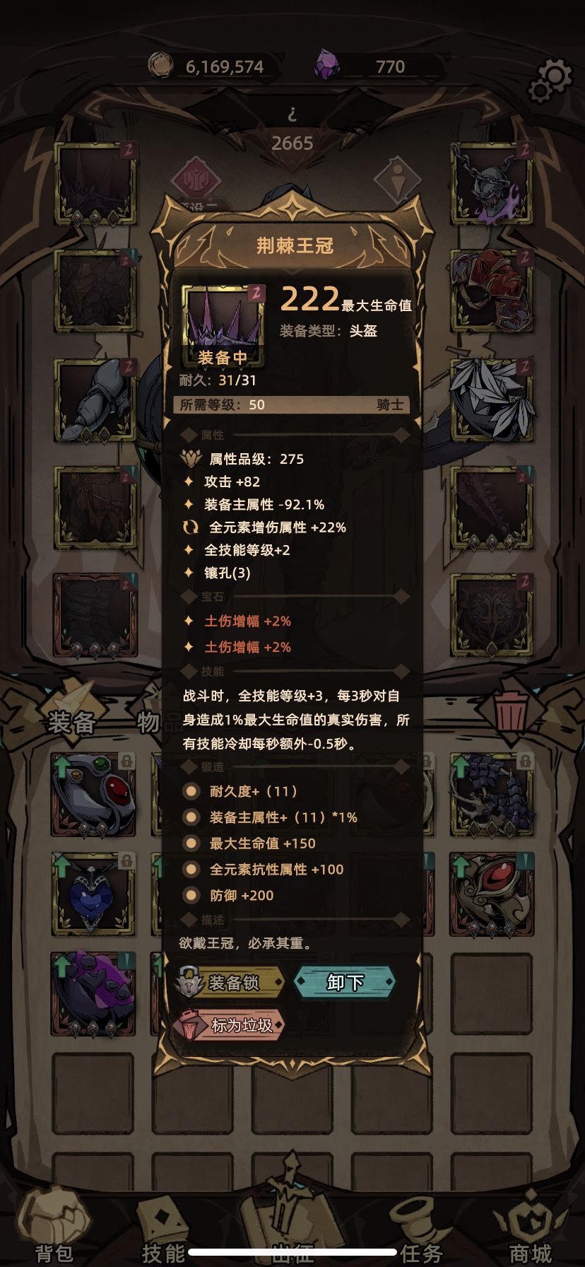 荆棘头,可作为毕业装备,5级全技能、带孔、22%元素增幅、加速叠甲、减cd