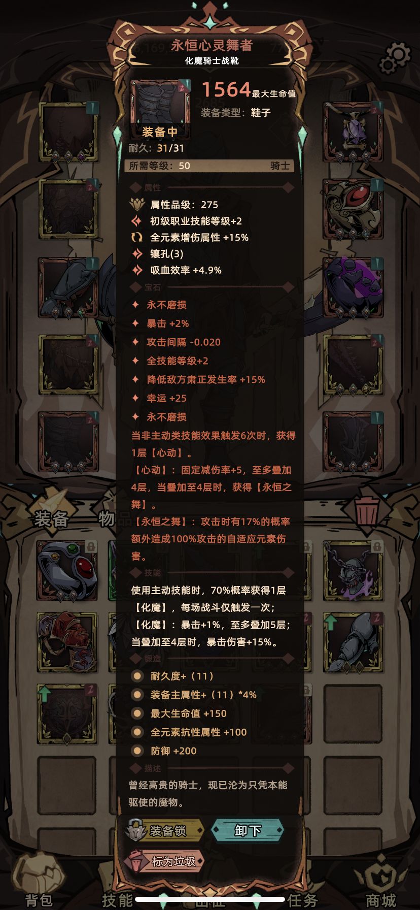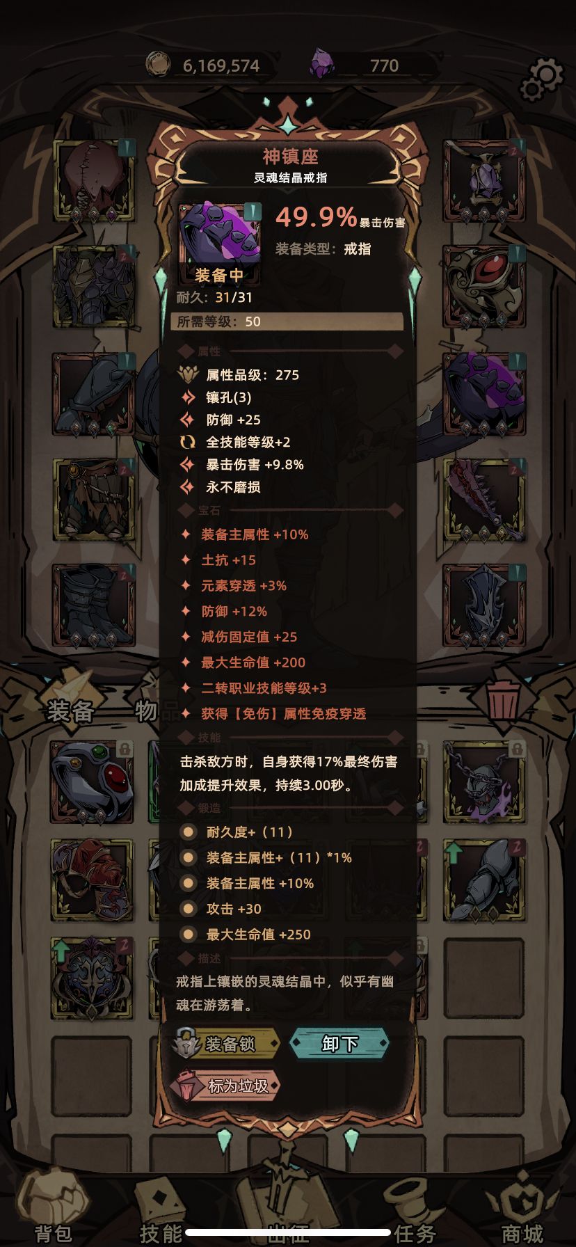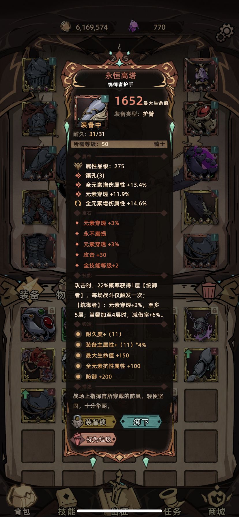 刷魔龙甲和爬塔都需要它,提供减肃正、元素增幅、元素穿透、强化提供暴击暴伤