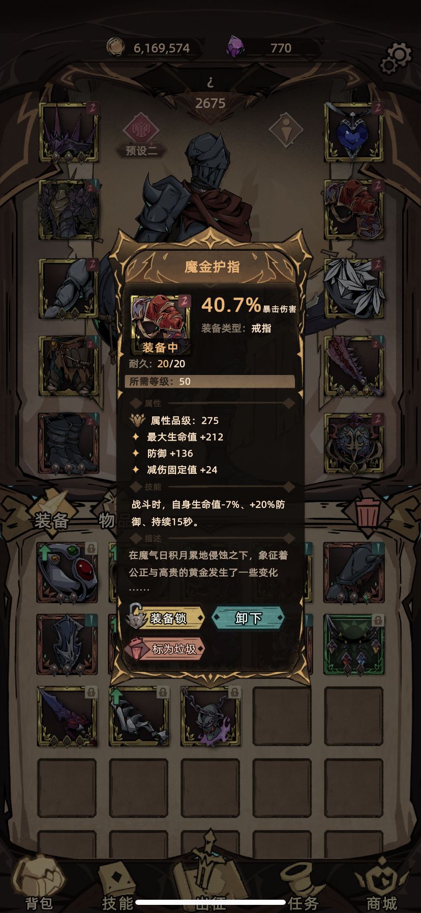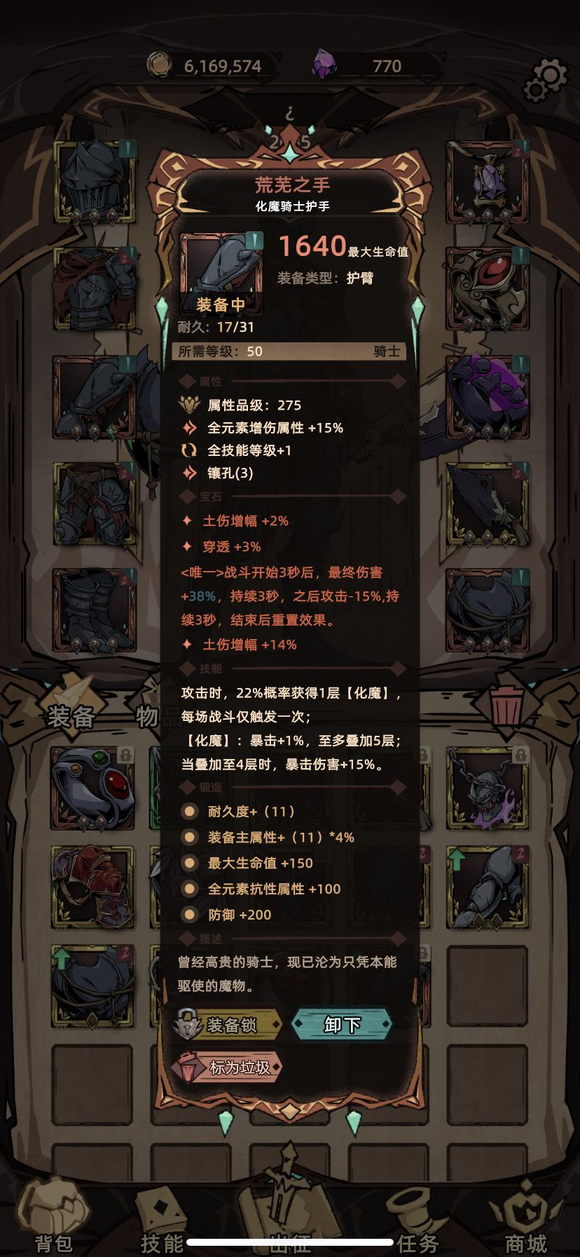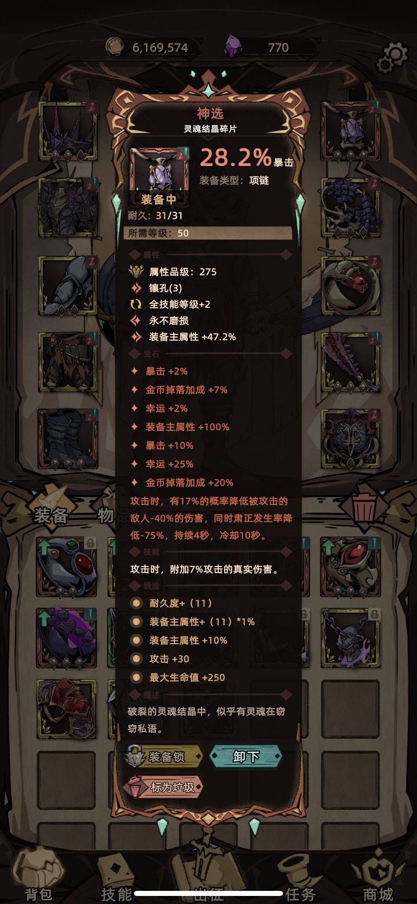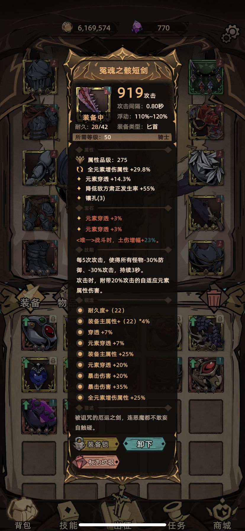 刷魔龙甲和爬塔都需要它,提供减肃正、元素增幅、元素穿透、强化提供暴击暴伤