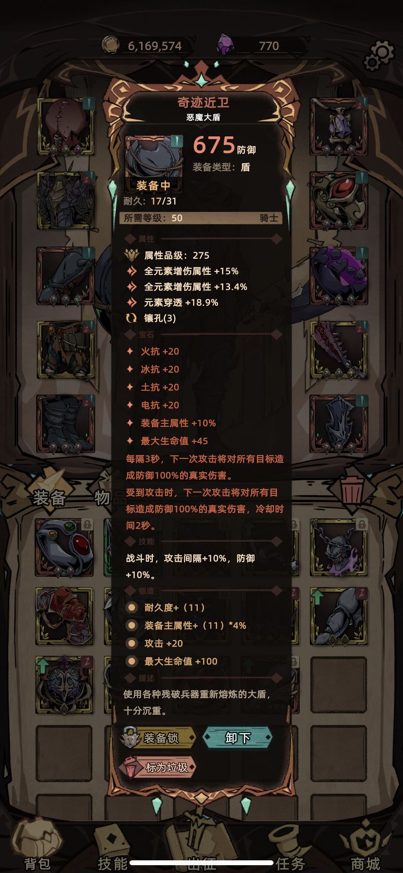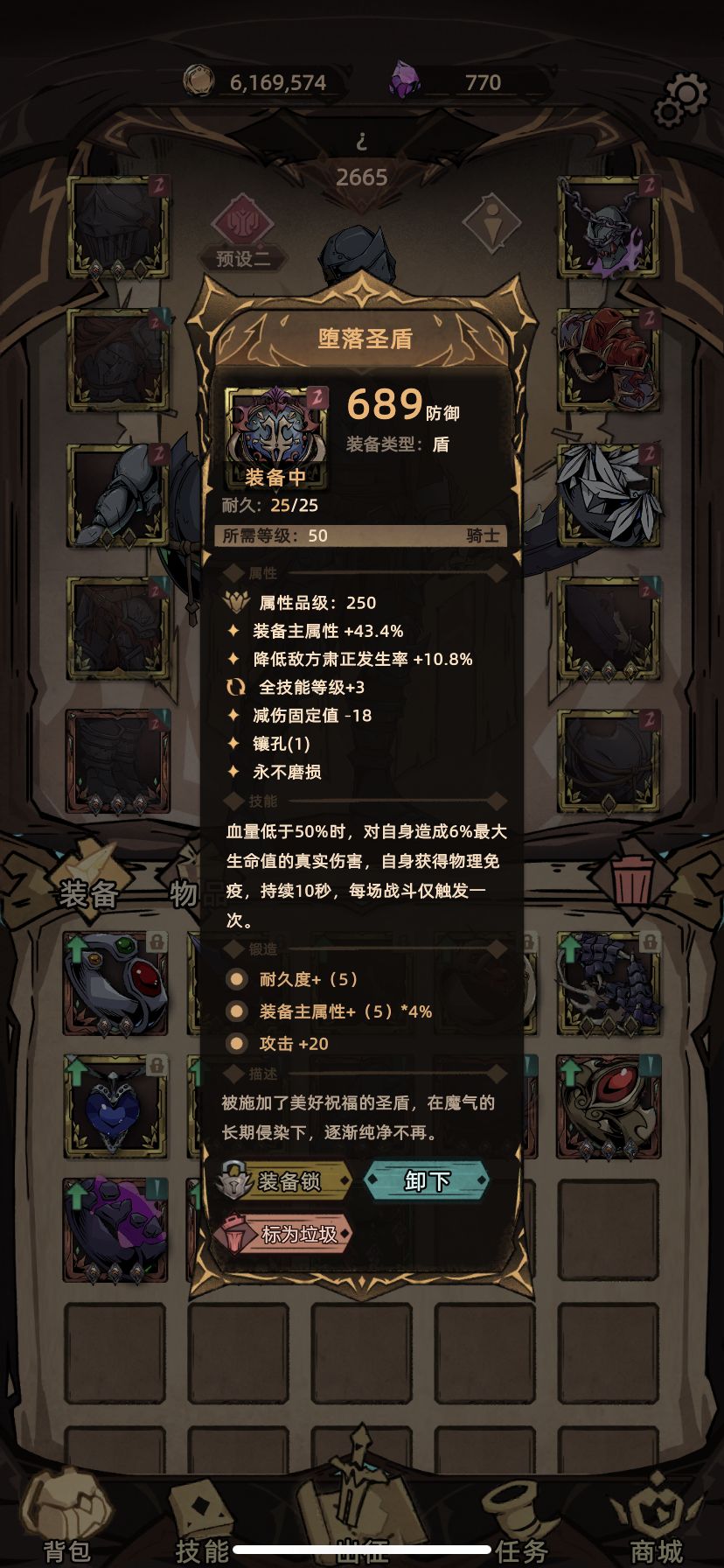 堕落圣盾,魔界深渊-根源掉落,可作为毕业装备,3级全技能、带孔、20%降肃正