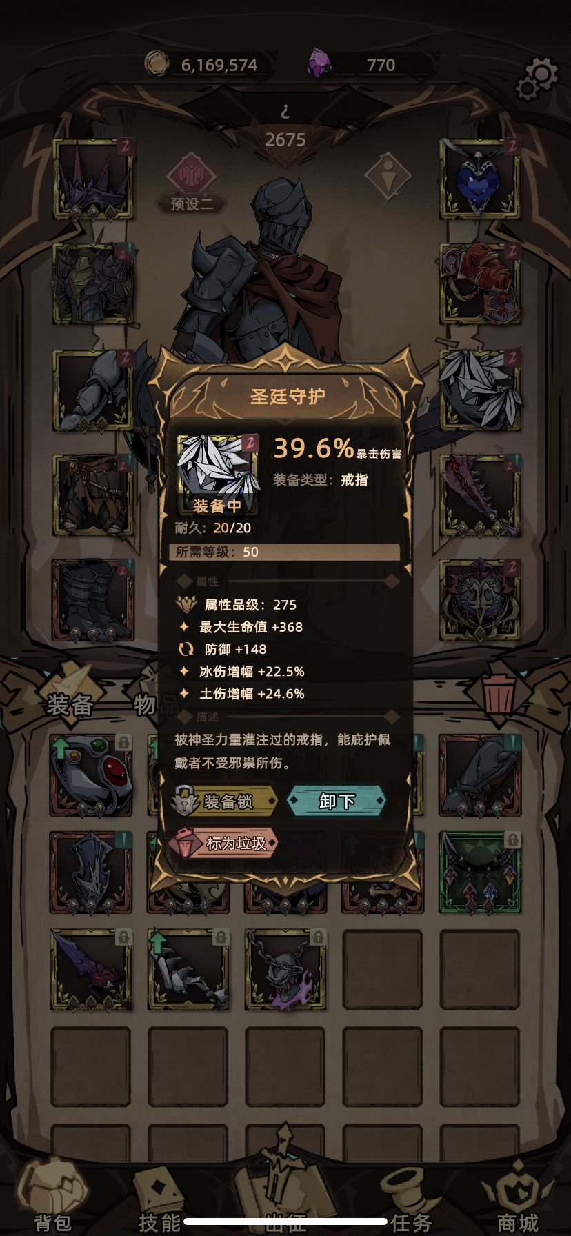 圣廷守护,提供150防御、25%土伤,主属性为土伤最佳