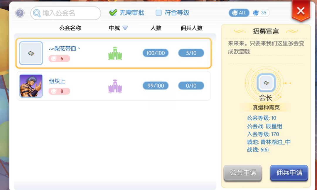 只要用背号申请公会,但是每个城池只会激活一次属性,有很多有城的公会可以无需审批就可以进去,进去就可以马上完成成就,任务完成,马上退会。或者可以找其他朋友的联盟公会帮忙,进去帮忙捐一次建筑,然后就可以进去蹭个城的成就~