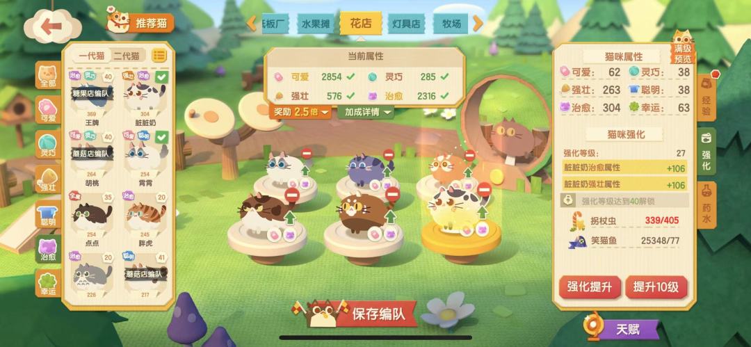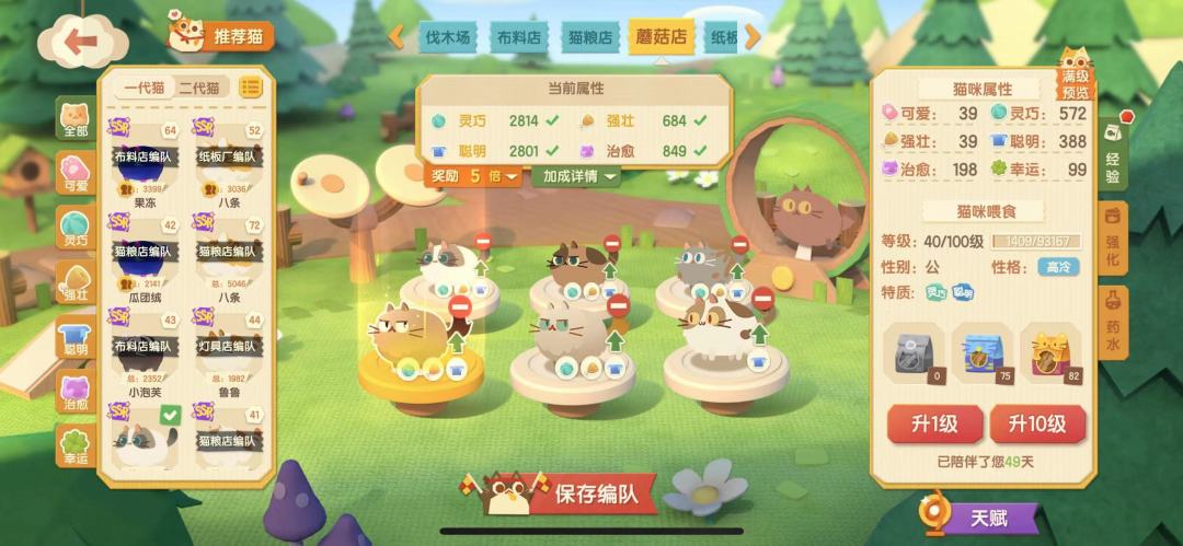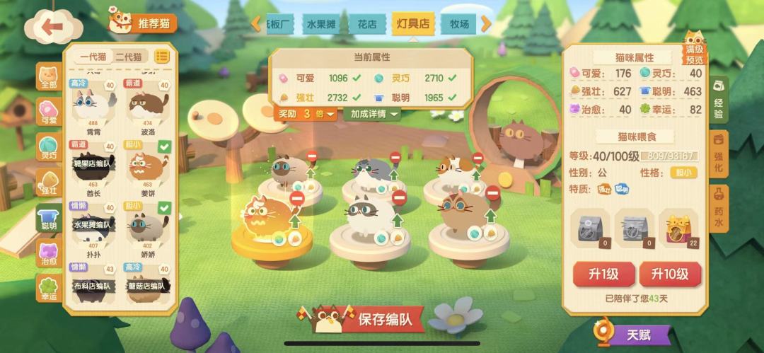 后续的强化材料并不需要那么高的倍数,而我们完全可以强化好在基础打工本一代猫后,空出二代格子让它们去接下去的打工本。