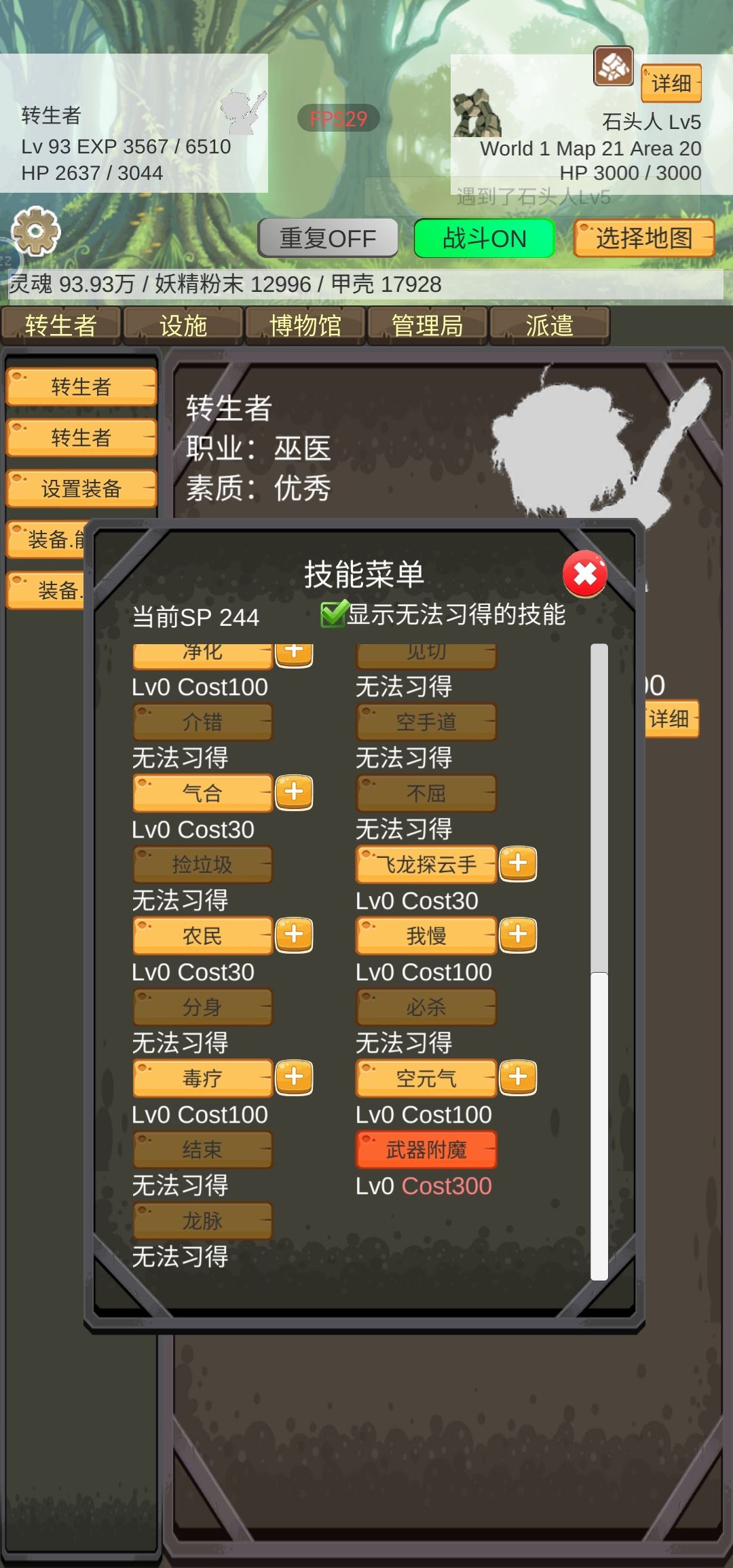 职业为巫医确无法习得技能龙脉