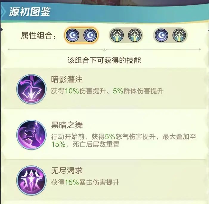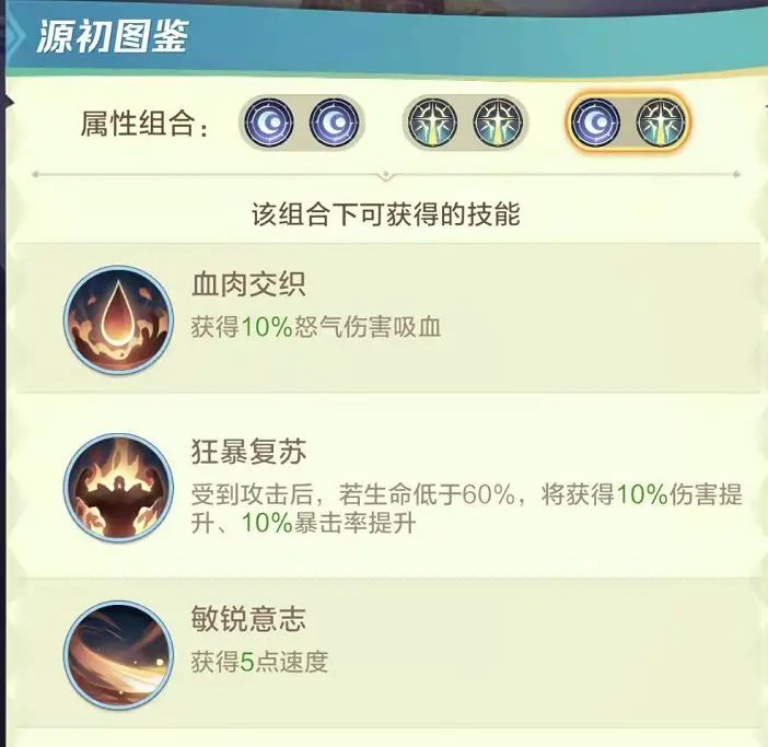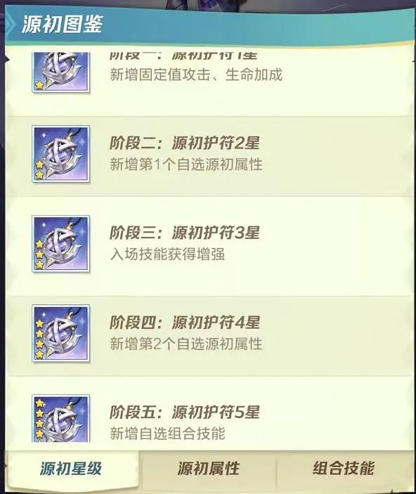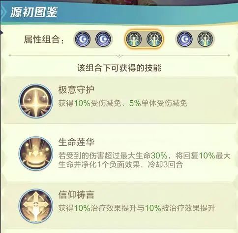 图鉴里能提前看到每次升星的效果,2、4、5星获得“源初属性”。源初属性分为两种,一种是增伤,一种是减伤。源初属性的选择会影响五星时的“源初技能”,源初属性推荐战士克星、牧师克星(视版本而定)