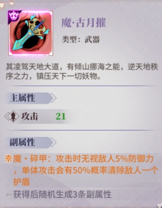 副属性:速度(必须)、命中、百分比防御(抵抗)