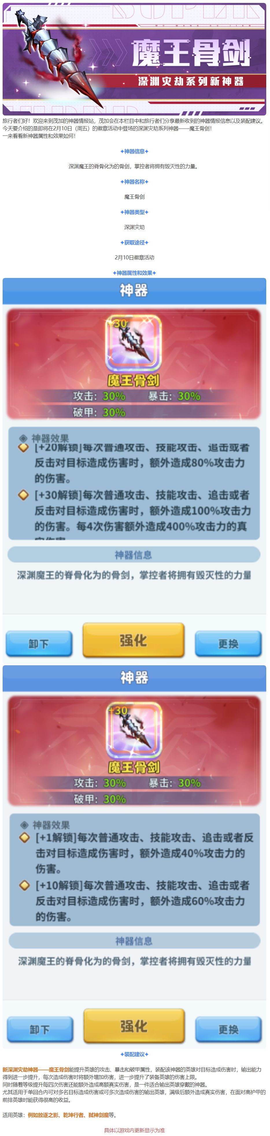 神器情报站 | 深渊灾劫系列神器——魔王骨剑