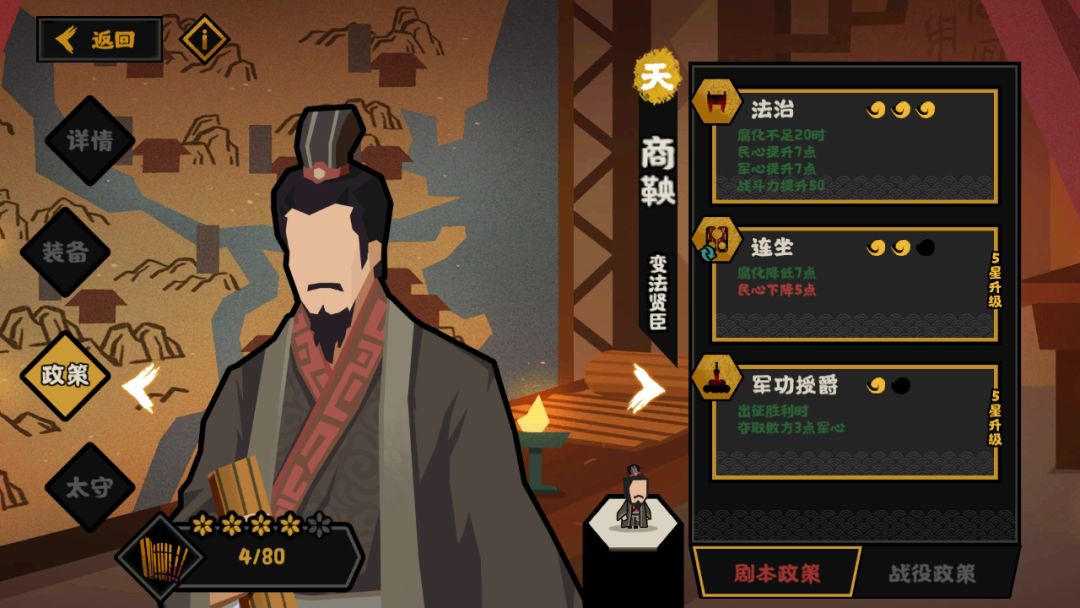 4号:这类几乎全是名臣重要技能,毕竟可循环发展,而且一升一降数值起来的快。这类有:商鞅2,曦和2,庄子2等等,这一类一般是升一个数值,降一个数值,降的比升的要少一些。