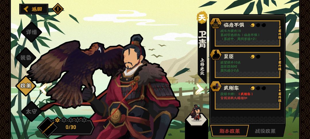 14号/15号:比较多,这类卡牌获得的同时还伴随着数值变化,如果是数值增强那就是卡牌弱或名臣需要,如果是数值削弱那就是卡牌强或名臣需要。附带的数值主要用于防止超模,以及符合历史。这类技能有:白起2,娥皇女英1,卫青3等等。