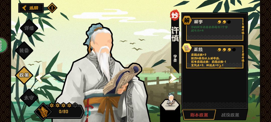 名臣契合度以及创新能力是锦上添花,这也很好说,举个例子:你不能把张飞的技能设计成完全依靠科技点的技能,也不能在关羽的技能中加入空城计,但是,你也不能把技能单纯地设计成只加战斗力的技能,更不能重复以前名臣的技能,技能要与名臣背景有些关系,又要与他人有所不同。