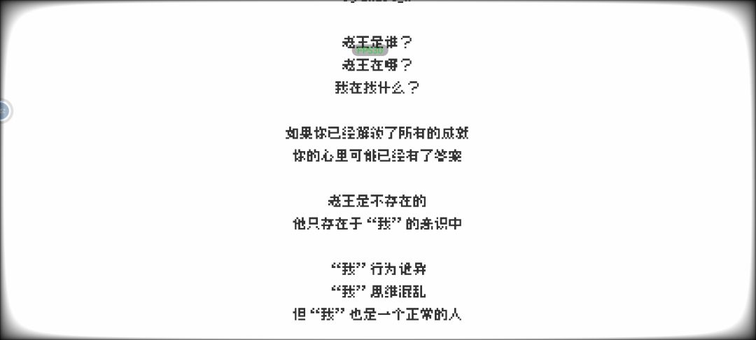 此时“我”已经有所猜测,“老王”在现实中是否真的不存在,如果识趣一点,不继续追问下去,那么就会忘掉一切,重新开始,达成成就:窃窃私语。
