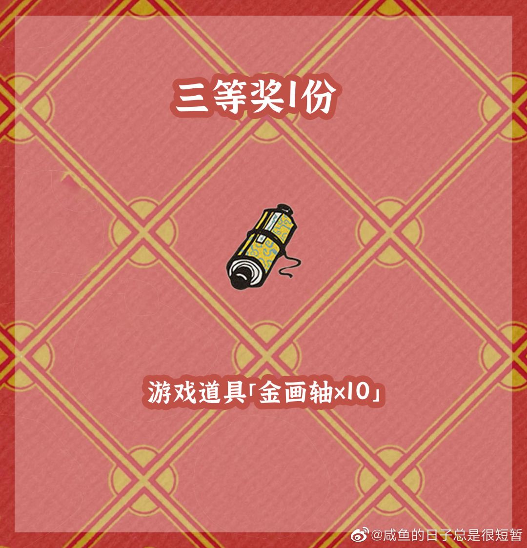 三等奖:金画轴x10 1位