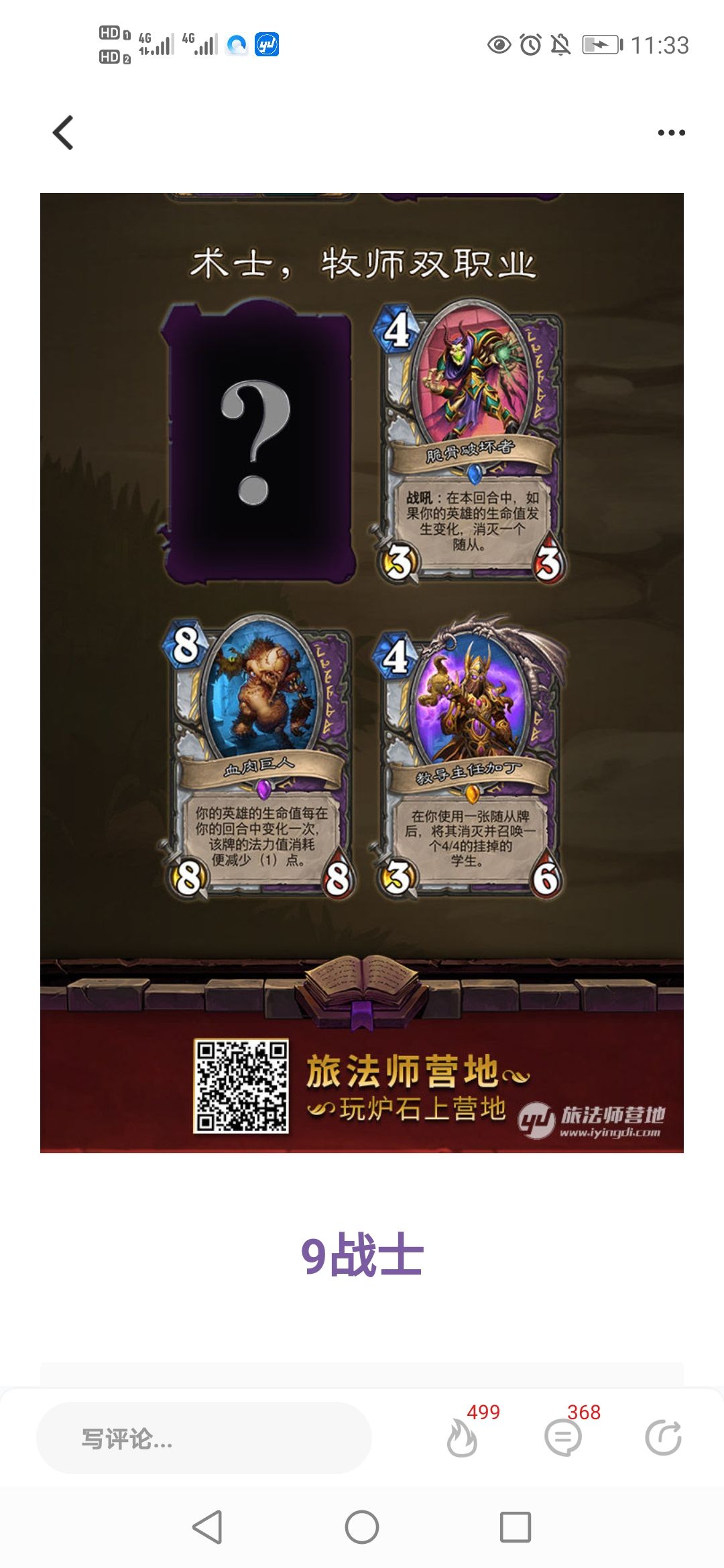 下版本的灵魂碎片感觉对术士有很大的补强,术士自残需要奶,奶2血还是十分实用,还有配合碎片的334,545都是不错的强卡,同时碎片配合自残能在中期拍下88的血肉巨人,抽到碎片又可以直接使用433单吃别人怪,。。反而碎片给伊利丹没什么用,首先332打全场3,伊利丹主快攻这个解场搞不好是解自己场,这个555加5攻厉害,但是灵魂碎片是治疗的,对伊利丹极其鸡肋,而且投资灵魂碎片会略亏节奏,只能等有控制体系伊利丹可以用一下这个碎片。综合分析术士下版本应该有t1顶尖实力,排名第二这样,毕竟有猎爹在,术士拿第一较难。。