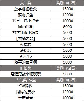 时长达标的主播,每人5000钻,共20个名额,超过20人则人气排名靠前者优先。