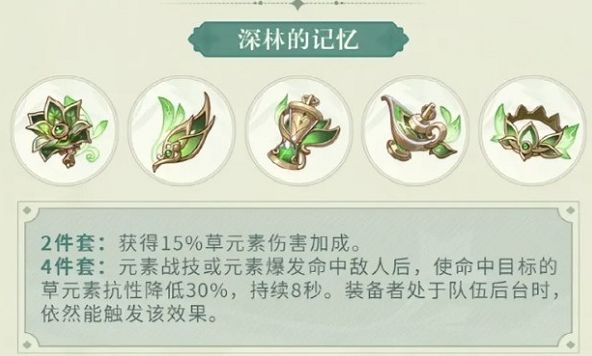 想要草种伤害高,后端的精通就必须要高。在圣遗物的选择上,一定要选择主副词条高精通的圣遗物。除了后端之外的角色,可以带深林的记忆这类减少地方草抗的圣遗物,对于草种的伤害也会有不小的提升。