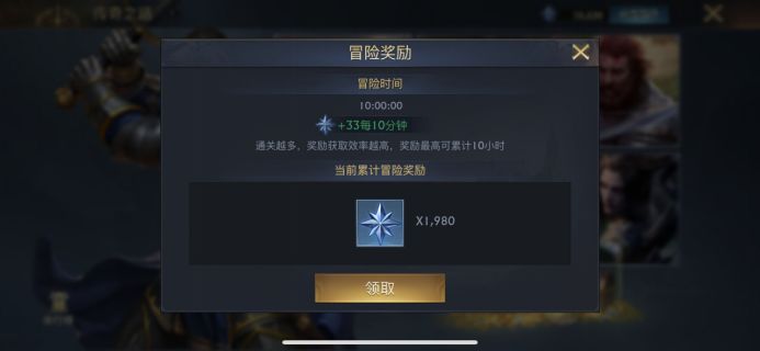 通关后,可累计冒险奖励,冒险奖励越高,可以获得的远行者徽记越多,最高累计时间有限,各位领主要勤领取,不要攒满了溢出。