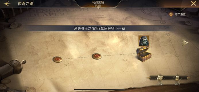 右上角章节重置可以开启新的挑战,重置当前部队,兵力配置恢复到初始状态,命运卡牌也将重置,卡牌当前增益将被清除,一切重新开始。