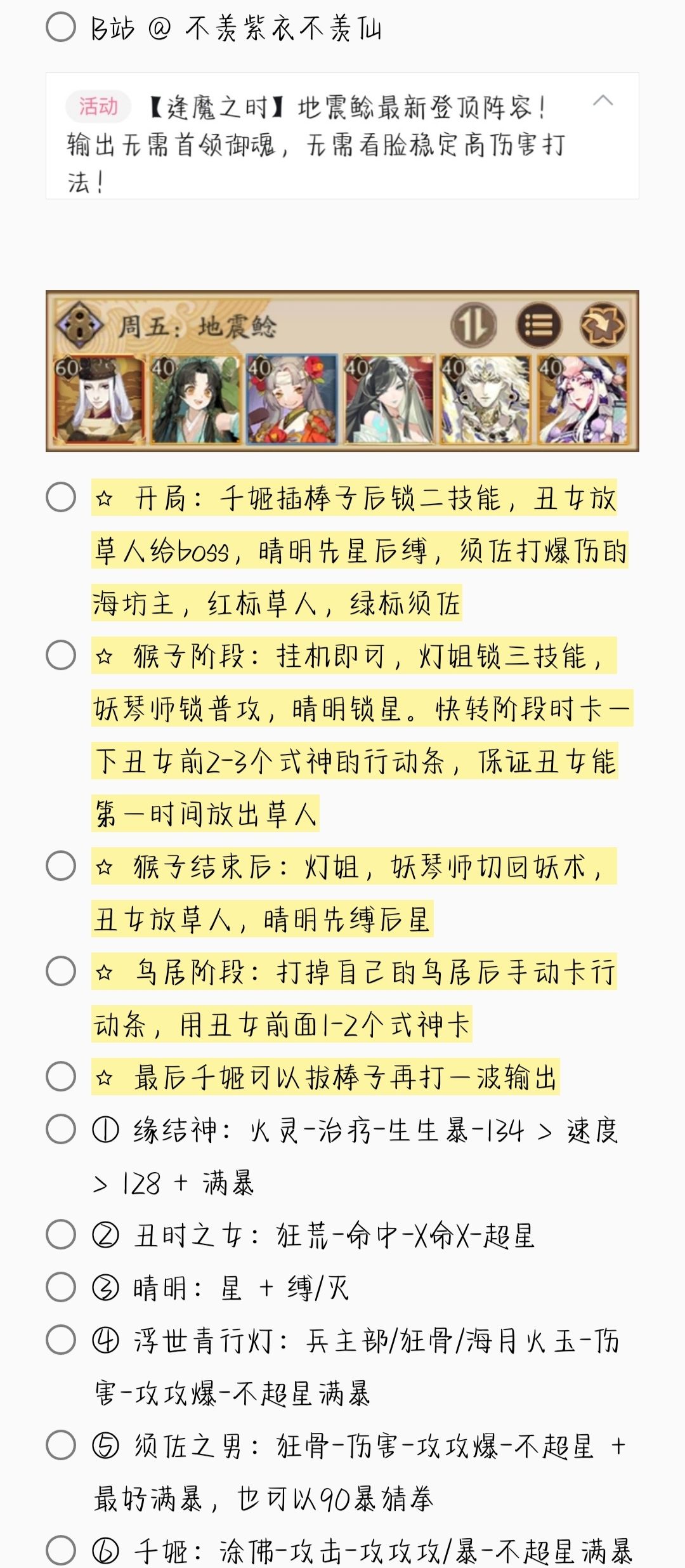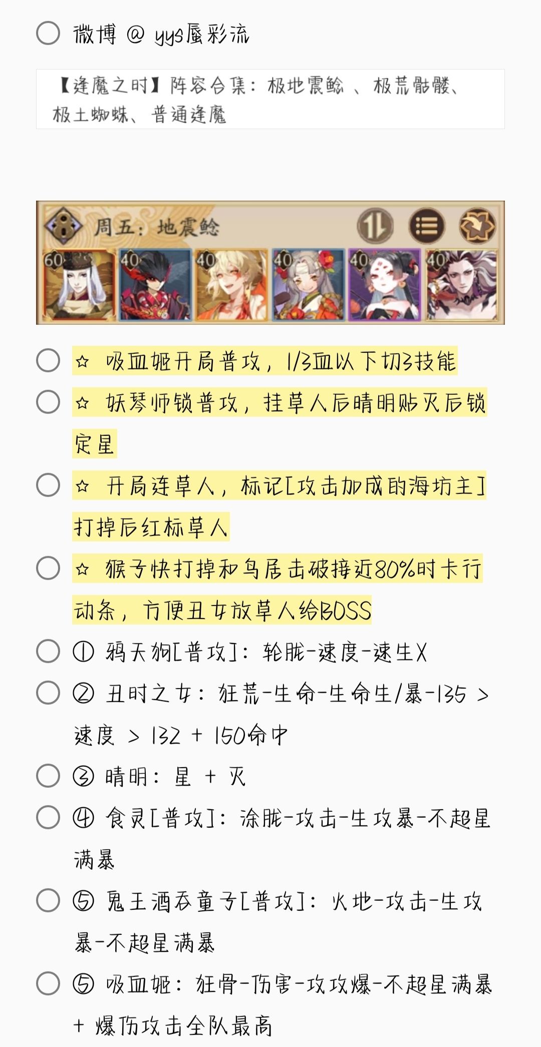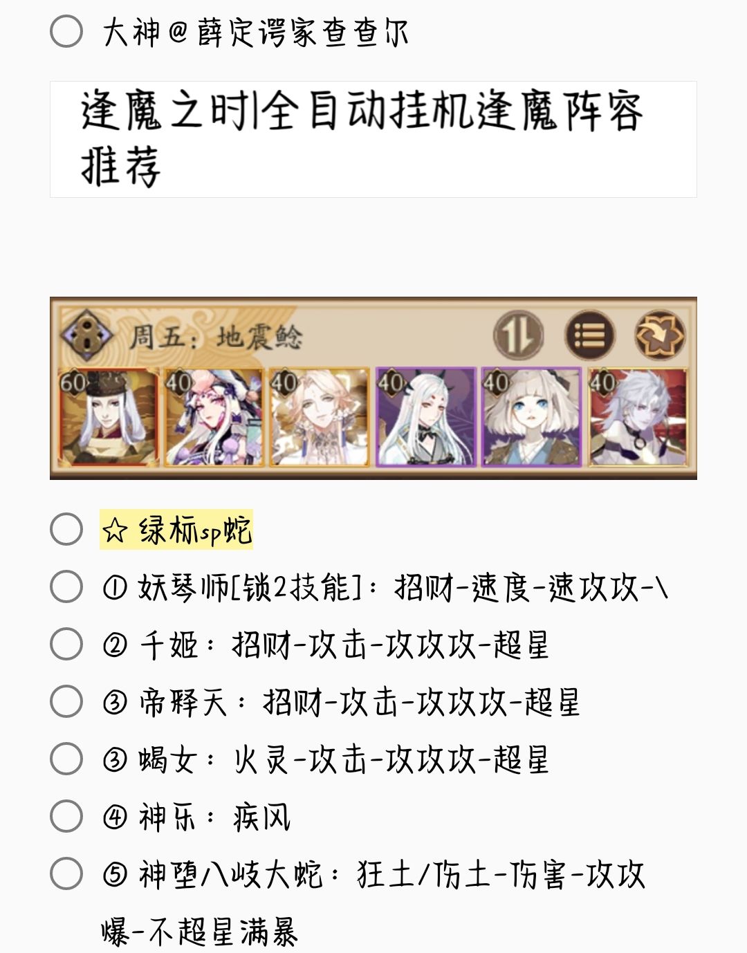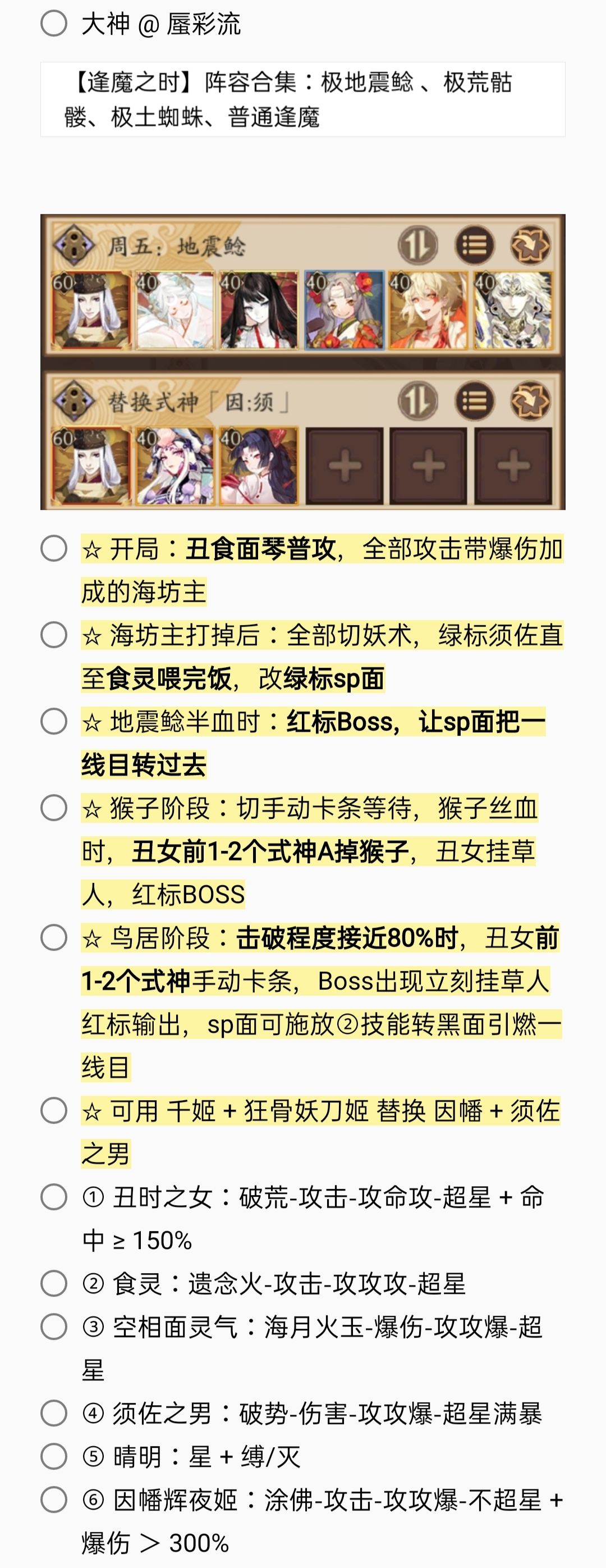 2. 若无特殊文字说明,阵容式神均需六星 + 满技能[151→至少满二技能,以此类推]