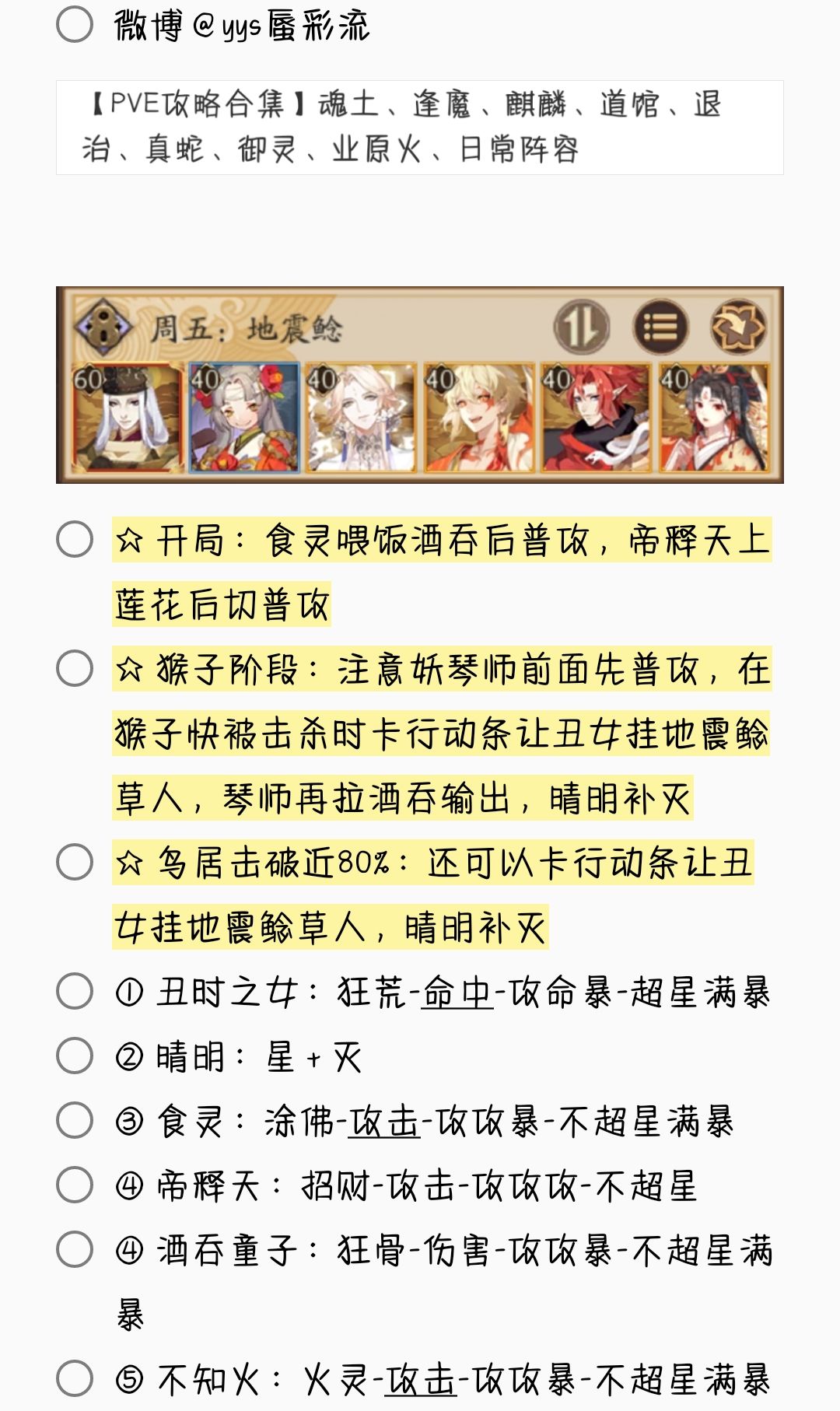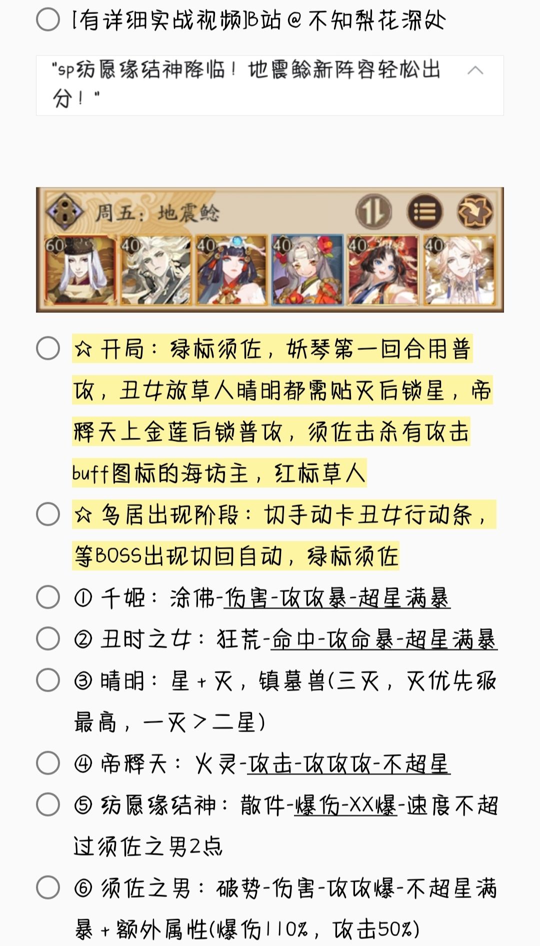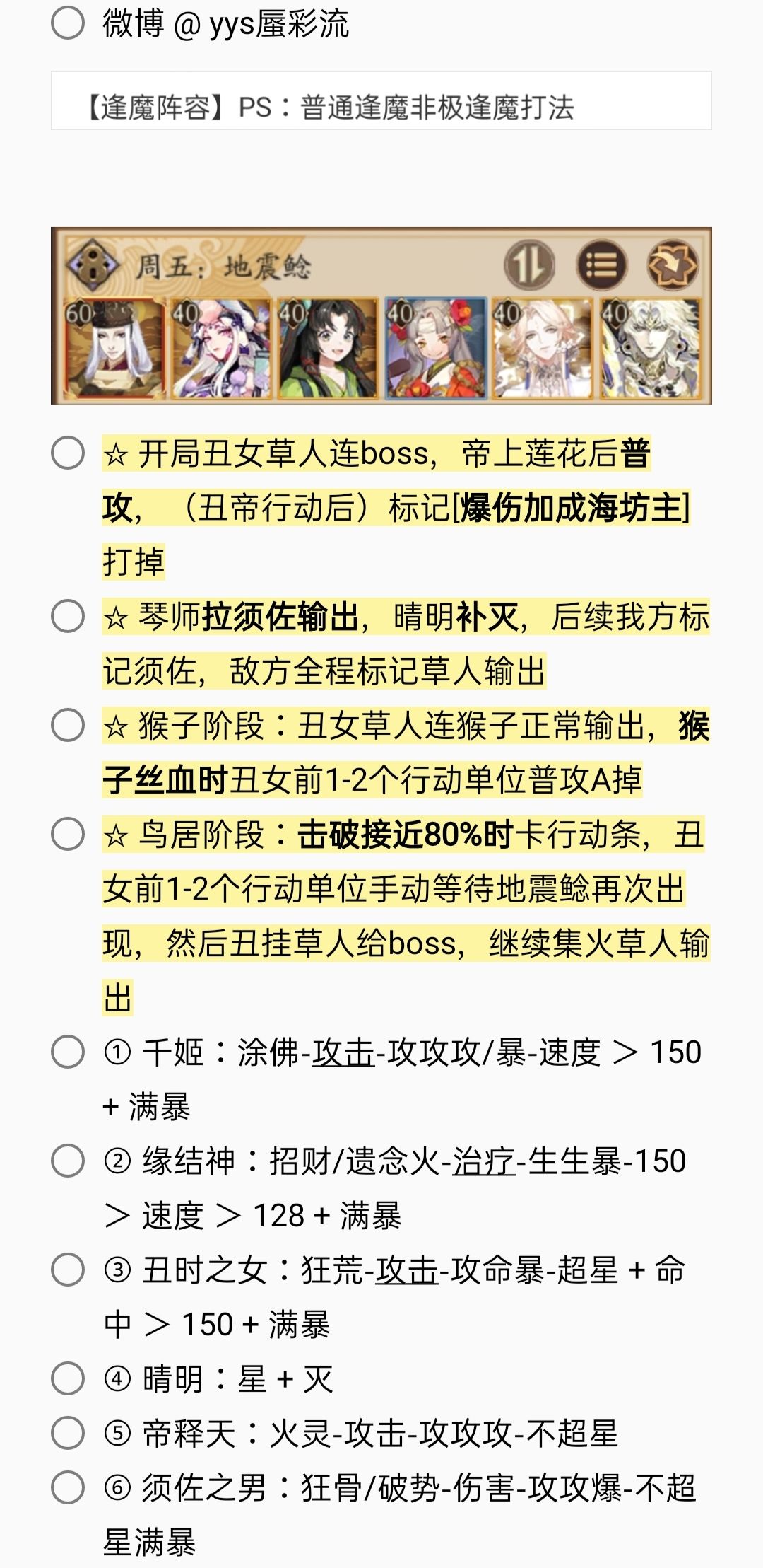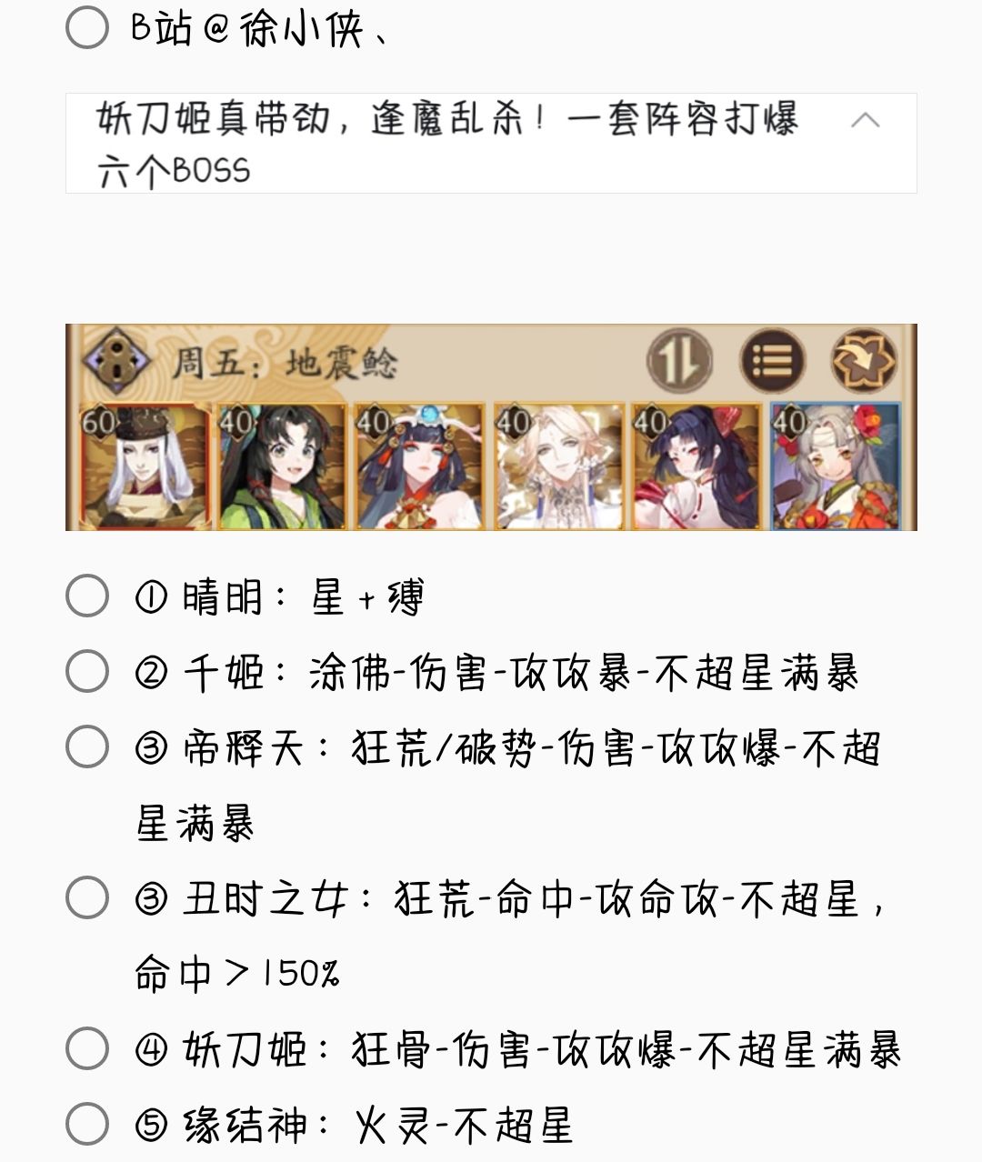 2. 若无特殊文字说明,阵容式神均需六星 + 满技能[151→至少满二技能,以此类推]