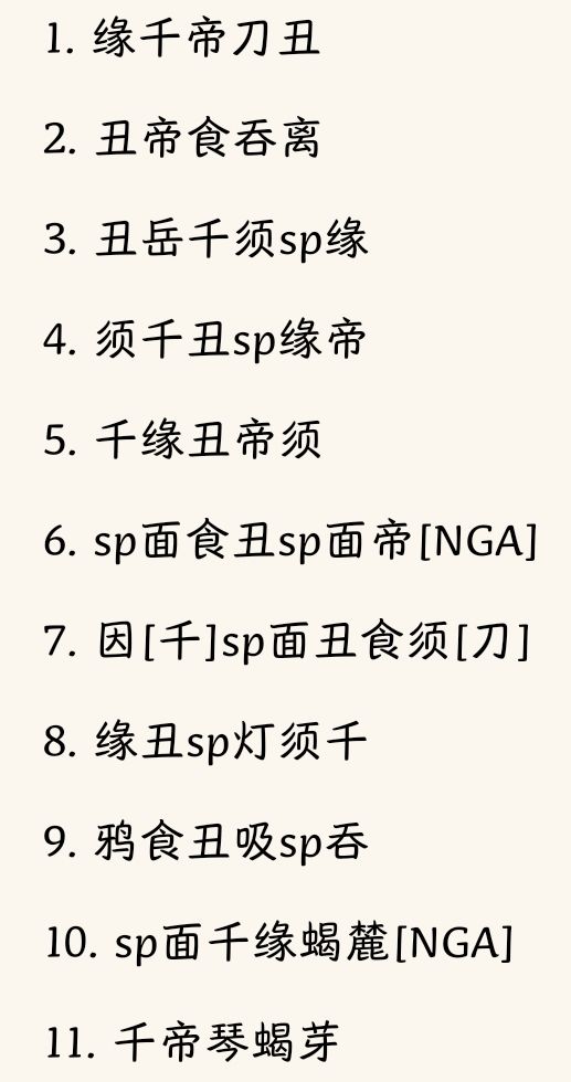 7. 由于强迫症,会在末尾添加一个萌新依照 个人图鉴发帖问的阵容收录[非主流使用阵容,仅提供参考]