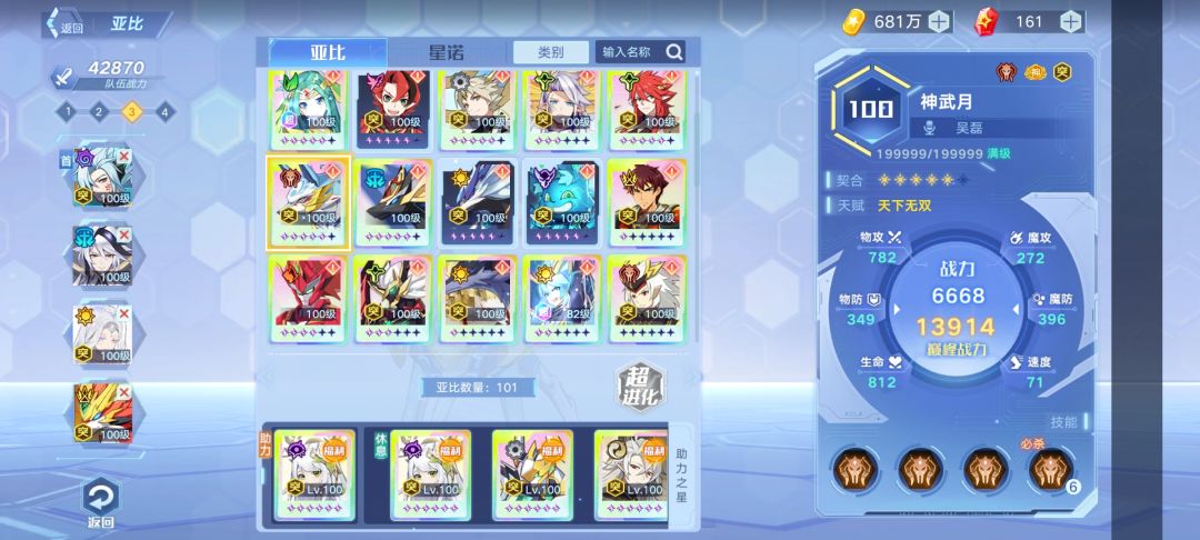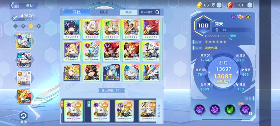 很少打pvp,主打收集和pve,断断续续回归了几次,只有梵天拉满了,昨天回归搞了阿赖耶识和无冕,不知道星辉的重要性