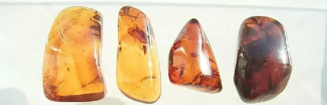 树脂被长时间埋藏于地下后,由于挥发性成分的损失和化学变化达到稳定状态,从而形成了琥珀。琥珀在世界各地都有被发现,多数呈不规则的结节状、杆状或水滴状,颜色有各种深浅的黄色、橙色、棕色,也有红色,但比较少见。还有一种乳白色不透明的品种,被称为骨珀。