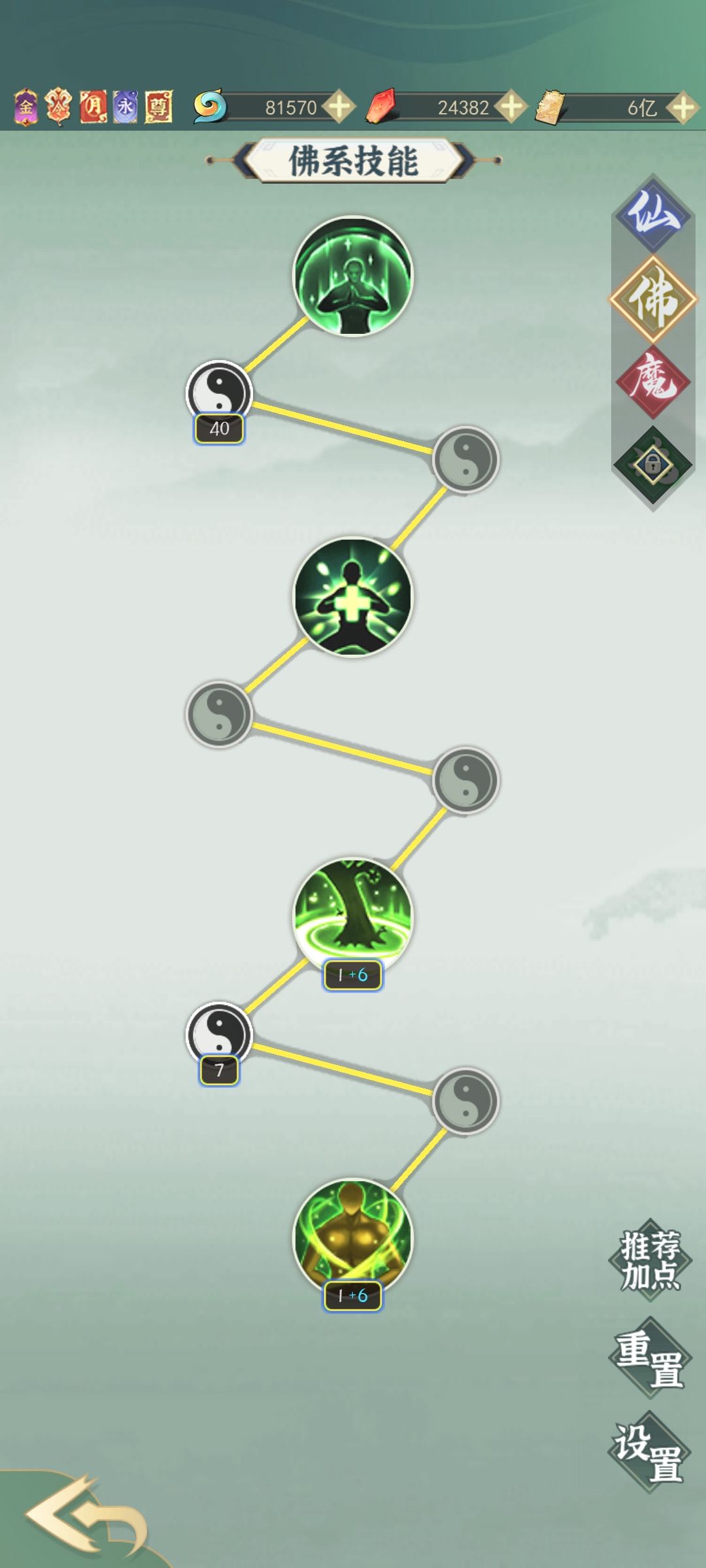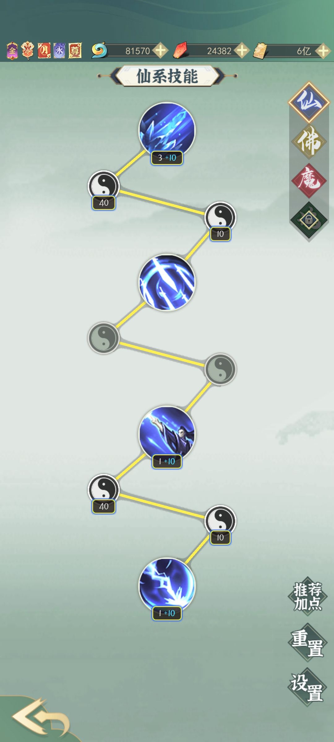 主动技能点一次就行,其余点速度,攻击,生命。技能顺序,佛3佛4仙3仙4.