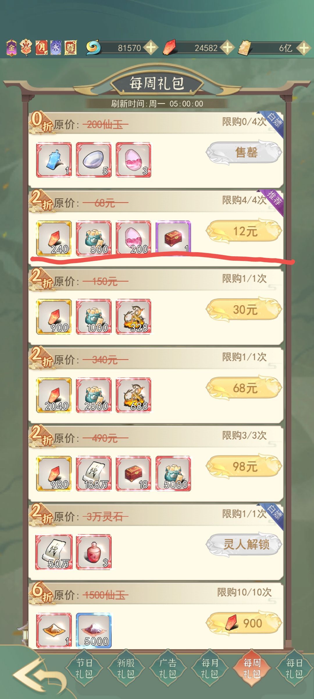 添加购物清单,要仙玉的除了修匙都不买(万氪可以买青龙徽章)。玉髓和三元婴丹不买,看自己仙玉余额,每天50次拉满,持续一周。