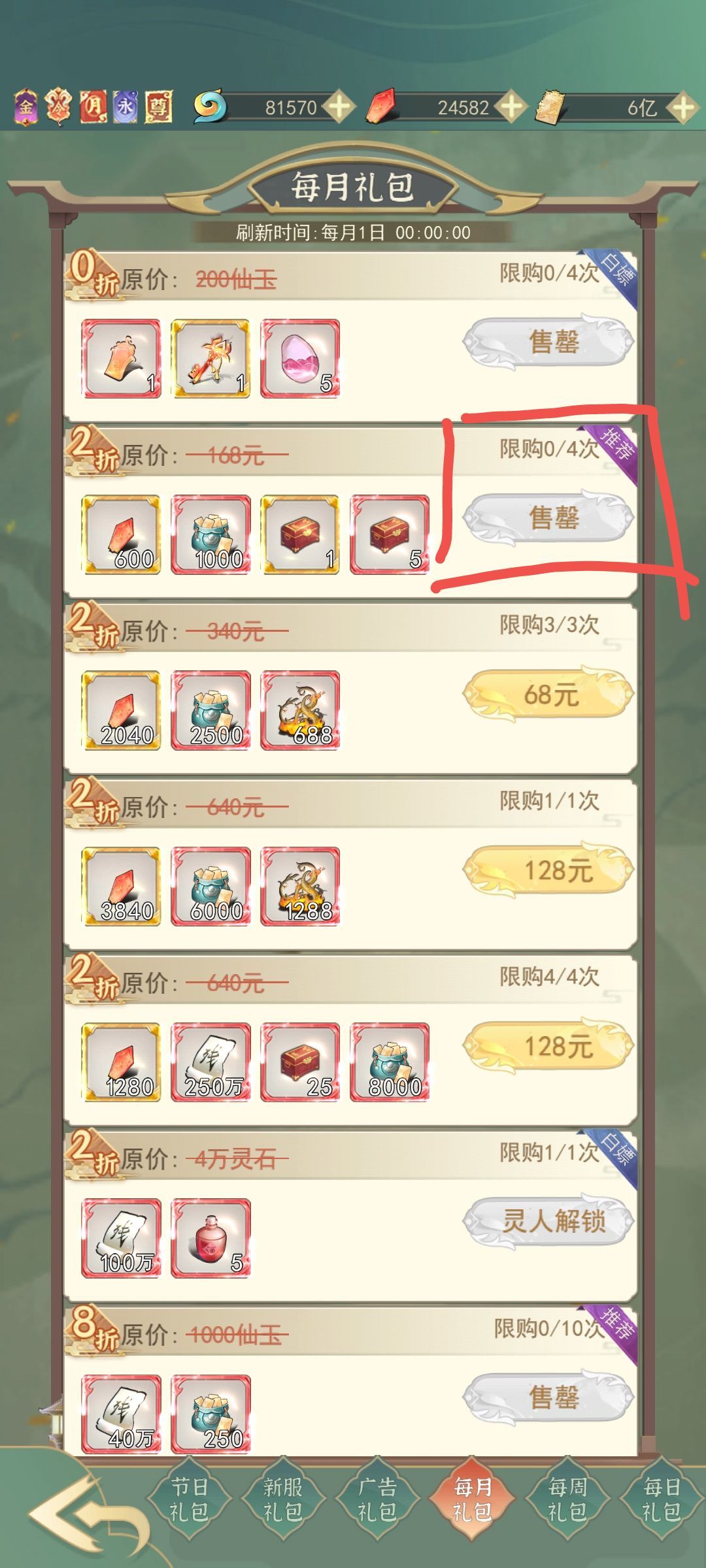 购买除了0氪以外的每月礼包和每周礼包的一部分。