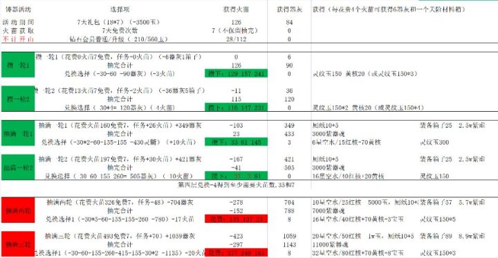 表格计算的是不计算势力商店下的花费与攒。准备拿满三轮的道友要准备多些。兑换方式不同与实际花费有些许偏差。