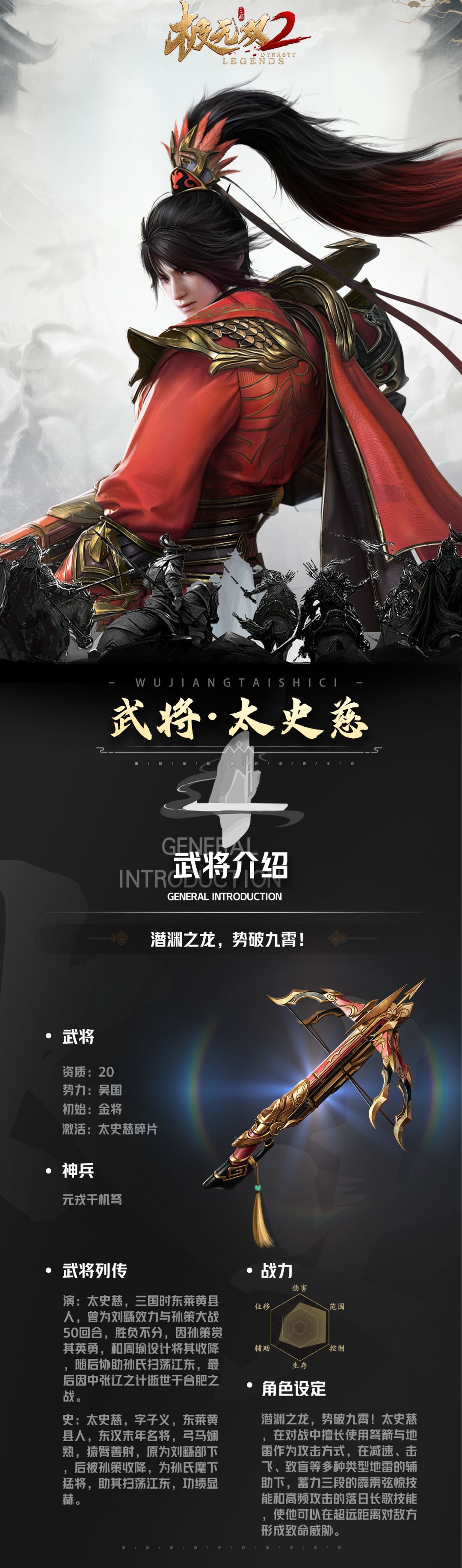 “大丈夫生于乱世,当带三尺剑立不世之功;今所志未遂,奈何死乎!”这是《三国演义》中太史慈临亡之时的感叹,这位拥有如此志向的吴国名将,在游戏中究竟有着怎样的设定呢?