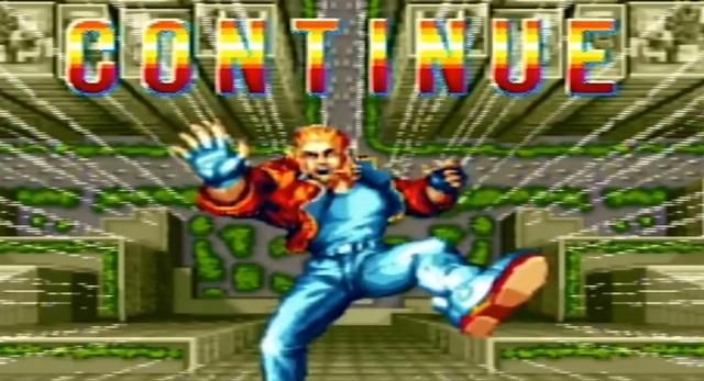 不过在初代《饿狼传说》里,诱导玩家投币的确是截然不同的游戏画面。玩家在和普通角色对战输掉后,会进入和《街霸2》差不多的倒计时画面,而如果玩家是败在了最终BOSS吉斯手里,那结束画面就会和结局相反变成玩家操纵的主角被吉斯从楼上丢下。这种结局彩蛋放在今日早已不足为奇,但在那个信息传播途径有限的年代,绝对可以让玩家们颇感新鲜,从而故意败在吉斯手里看一眼这个特殊的结局画面。