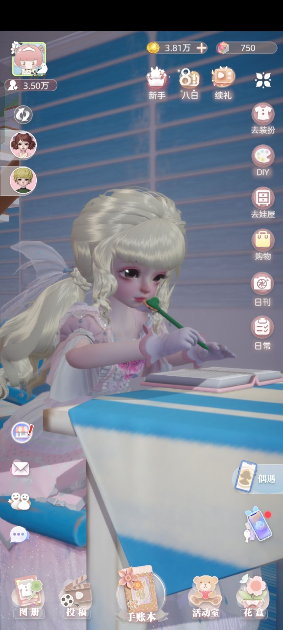 主线任务不是很肝,任务都比较合理,以手帐得方式开展任务真的有戳到我!没有充值入口,界面也很温馨干净,搞得我真的好想给他充钱啊!!!衣服做的很好看,可以diy,头发做的也很不错,有些可以看到发丝,头发不仅有光泽感还有多角度观察时候的光影感,很棒,衣服有个别丑的,但是感觉到工作室尽力了,希望可以多出点漂亮衣服!(悄咪咪告诉大家一个小细节,来回放大然后旋转娃屋,娃屋内家具得影子会有不同的变化,工作室真的很细!)