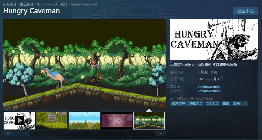 动作冒险游戏《饥饿原始人》(Hungry Caveman)现已在Steam平台推出,现在购买享85折优惠价,只需12.75,支持中文。与饥饿的原始人一起的新生代跳跃动作冒险!
