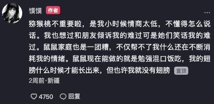 鼠鼠也怨过父母,也怨过亲戚。后来鼠鼠不怨任何人。只怨是鼠鼠的自己捏。」