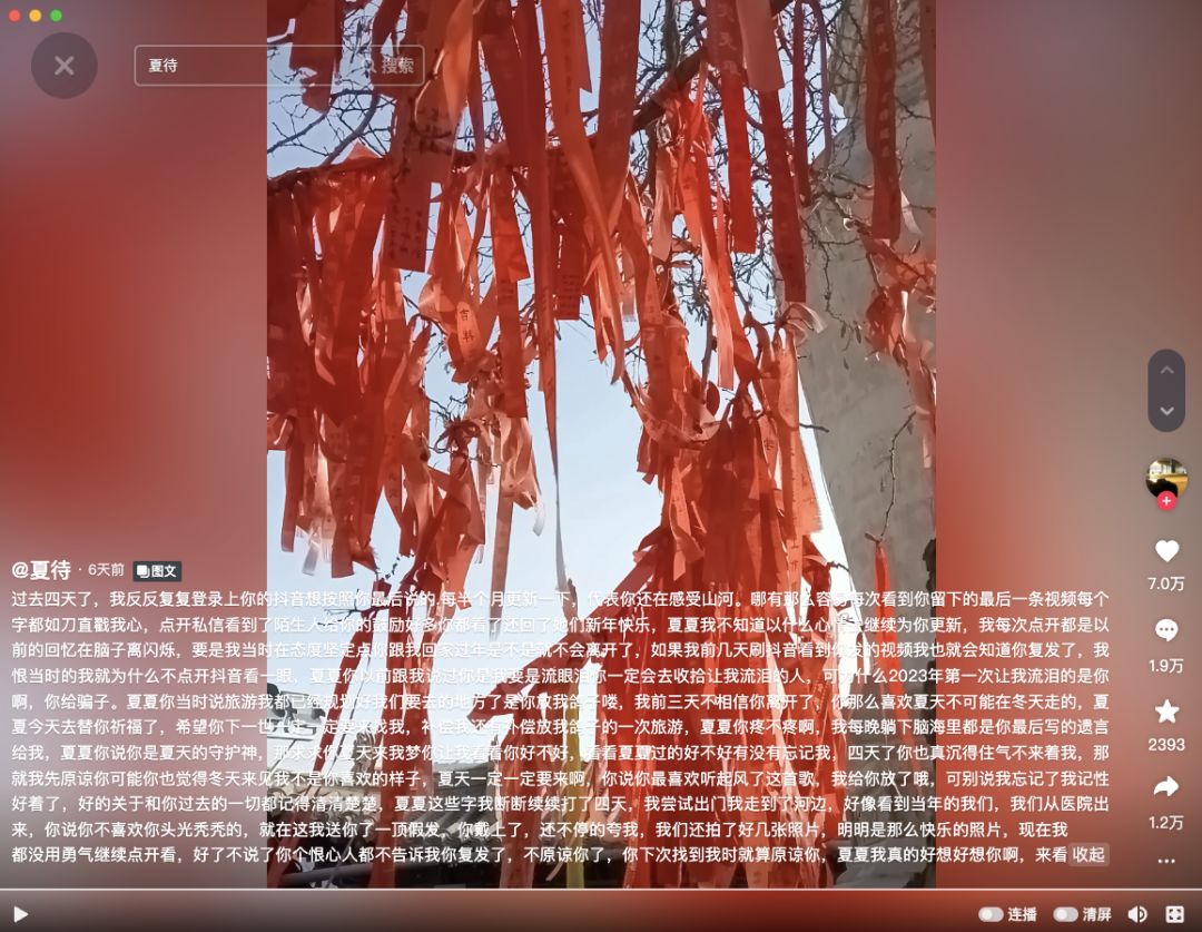 有人再次登上了名为「夏待」的抖音账号,