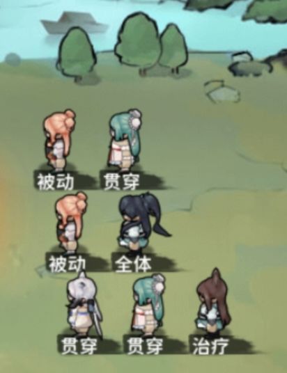 个人站位参考中间三个人上下各一个,上面大师兄(肉),中间最后一个是副肉,掌门(输出)站在了最下面