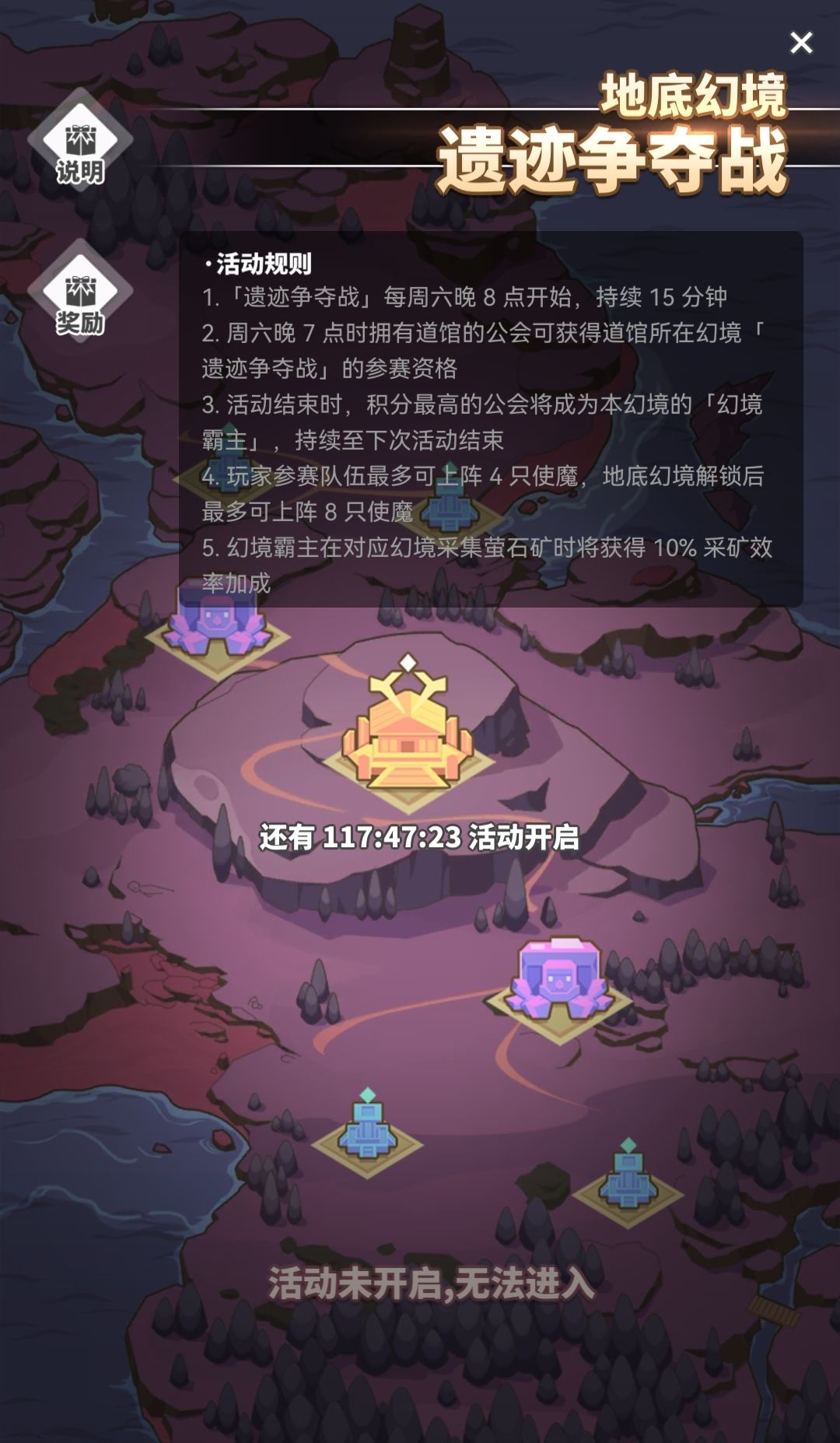 2.周六晚7点时拥有道馆的公会可获得道馆所在幻境「遗迹争夺战」的参赛资格