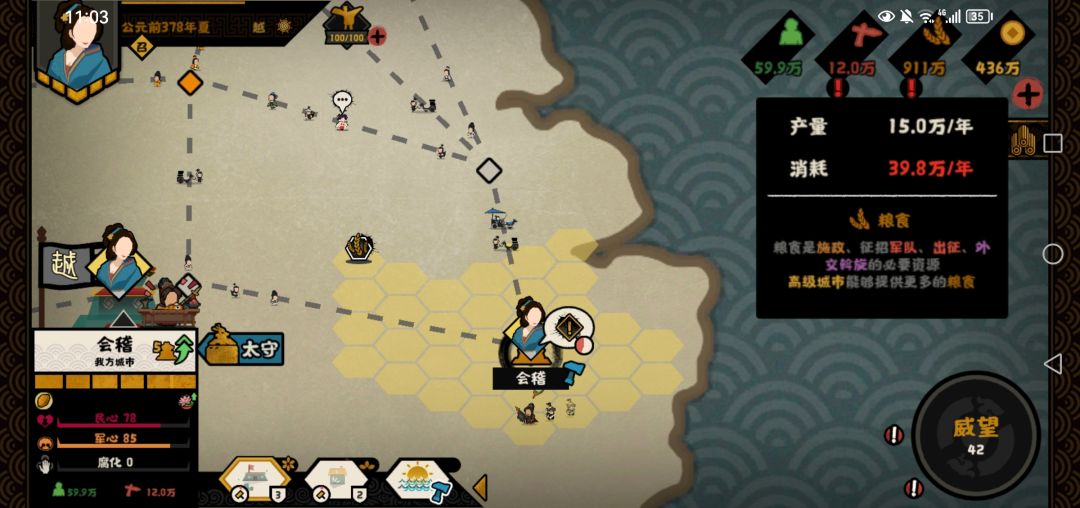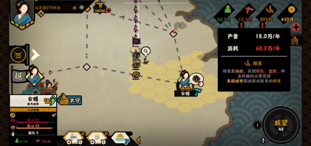 所以实际上在建好两个以上的民生建筑时,王翦的太守粮食消耗量已经完全超出了一政策本身的粮食消耗。