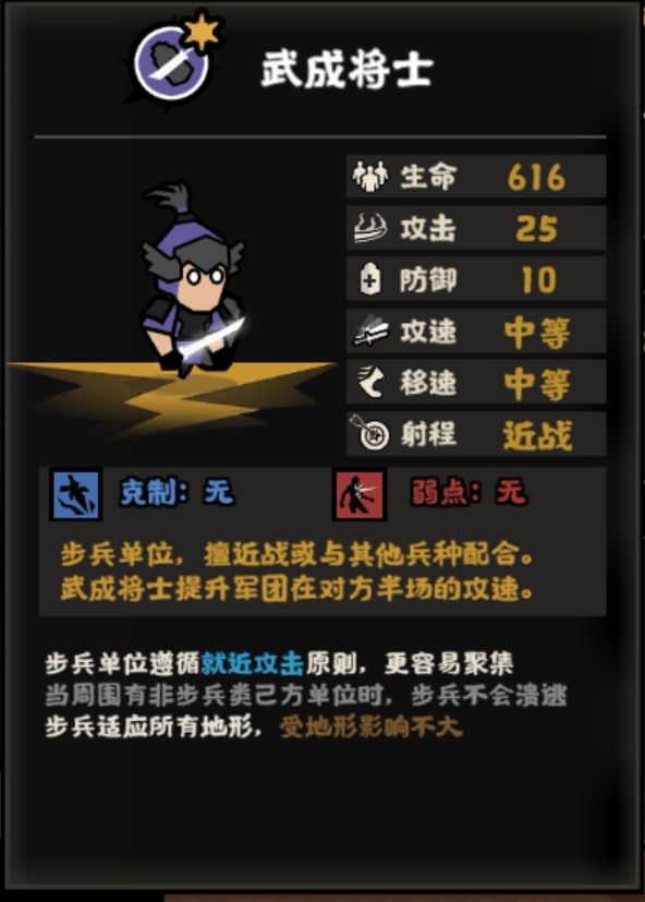 王翦的家仆本身的属性介于二级步兵到三级步兵之前,但是附带的被动效果十分强大。在对方半场40攻速,简称小激战。(虽然夸张了一点,但是确实肉眼可见的强度。)