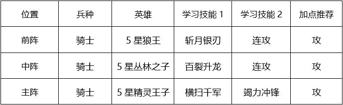 【狼王】的攻防属性都很优秀,攻击属性还达到了2.43,智力属性虽然偏低,但也能够接受。由于攻击距离只有1,所以【狼王】只能作为前阵英雄,而且他的伤害基本只能打在敌方比较肉的前阵上。技能【嗜血突袭】在对敌方造成物理伤害的同时还能给自身恢复兵力,兼具输出和续航。还可以配合【连攻】来增加【嗜血突袭】的触发概率,增加输出和续航。