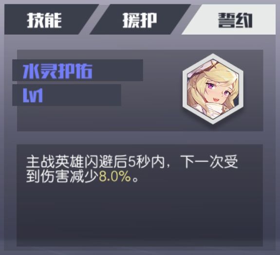 玛拉的誓约技能在觉醒之后,主战英雄闪避后一段时间内,减少所受到的伤害,同时普攻有一定概率造成【霜冻】效果。