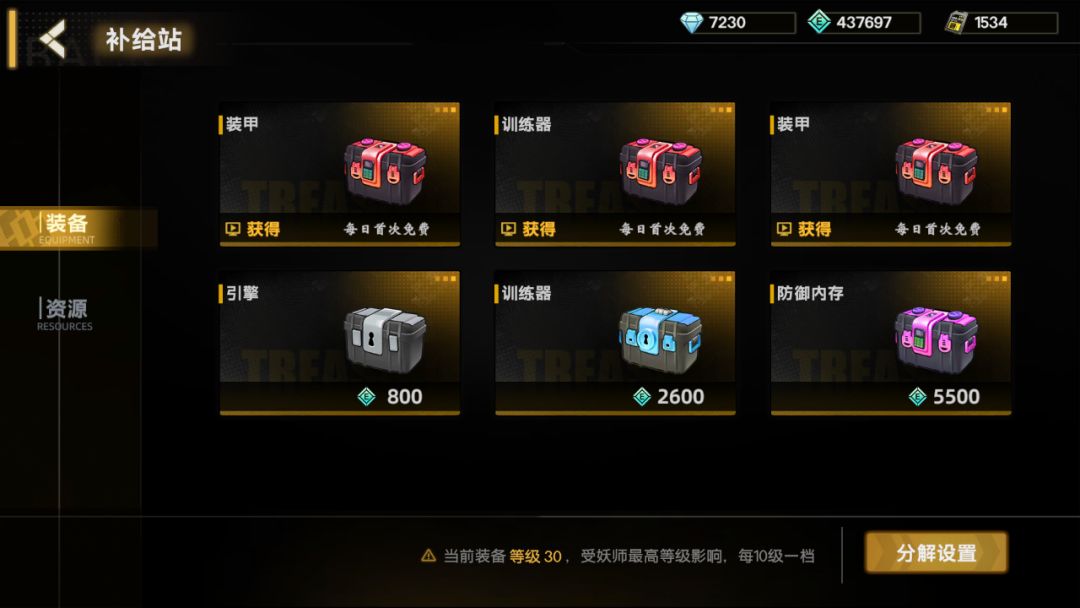 10级解锁补给站,盯着训练器,e币(黑晶)购买也能刷新出红箱子,红箱子大概率红装(最高红)。实际各位置都可以出吸血词条,训练器、引擎、电池、火控出吸血概率较高。